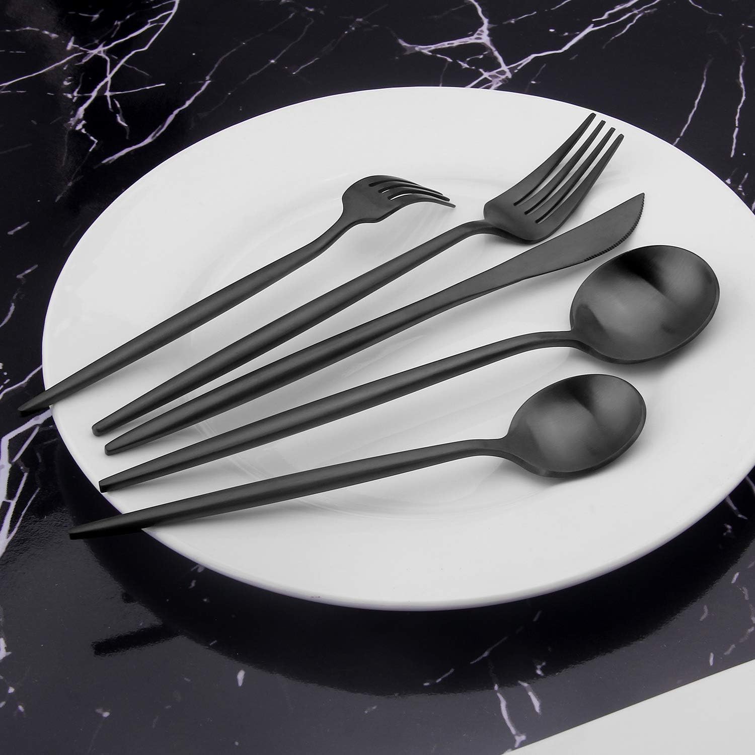 - β 20 pieces matte black flatware set is ideal for family, hotel, kitchen; Perfect for daily use, party, camping, picnic, gathering, restaurant, wedding banquet etc. And it is also a good choice for the gift.