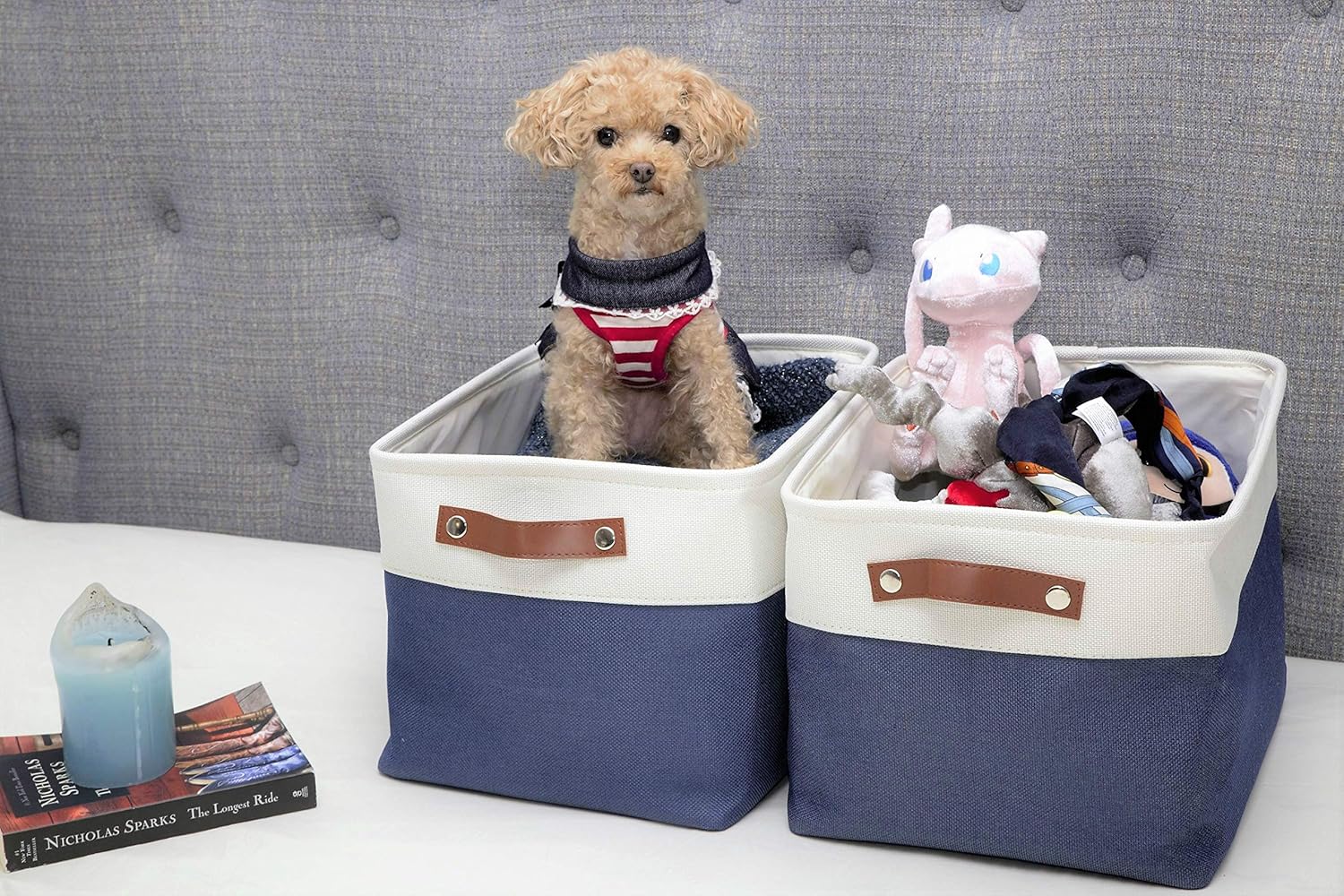 DECOMOMO Storage Baskets for Shelves - Fabric Closet Organizers and Storage Bins, Perfect Baskets for Organizing Closet Toys Nursery (Navy Blue and White, XL - 3 Pack)