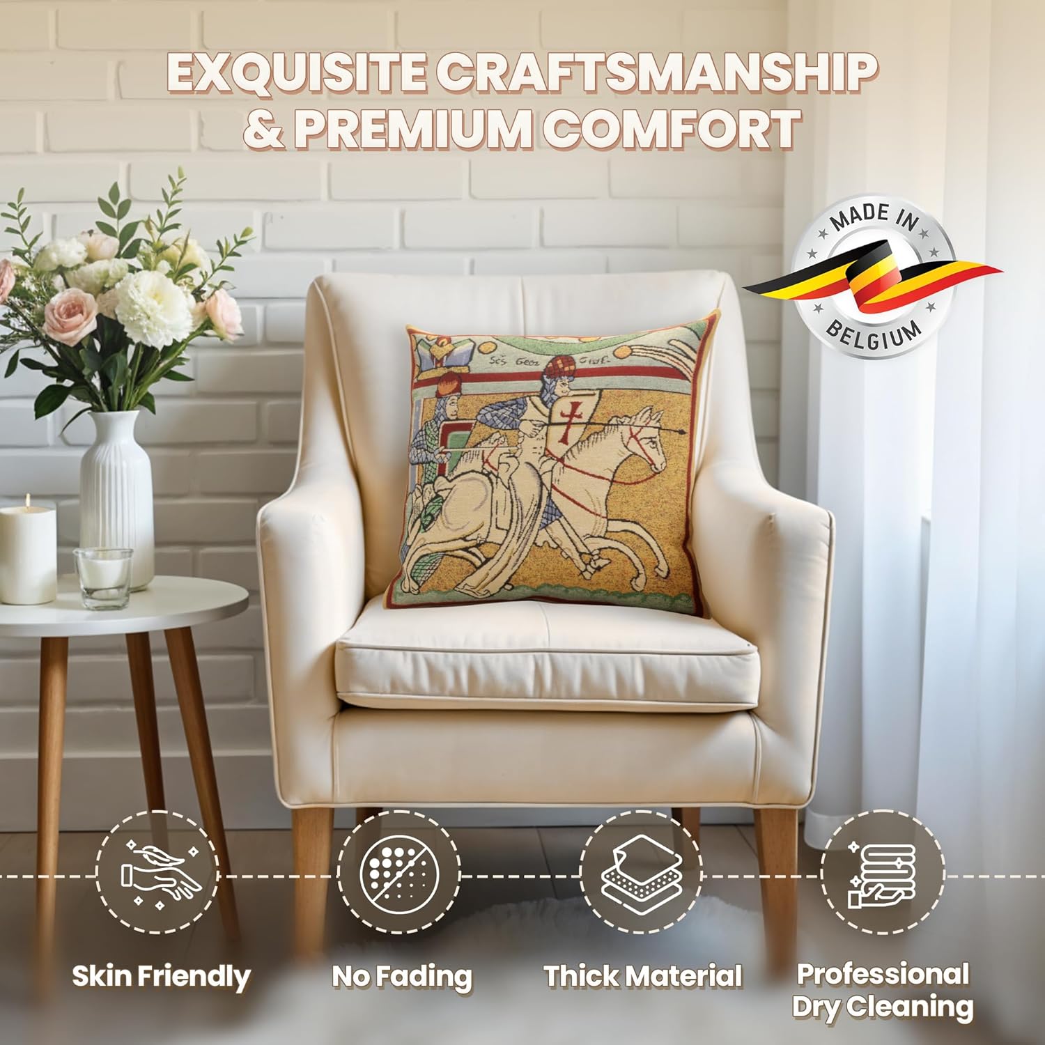 Charlotte Home Furnishings Chevaliers de St.Gregoire Throw Pillow Cover 16" x 16" – Medieval Knight Tapestry Cushion Case for Sofa, Couch, & Bed | Cotton Jacquard Woven in Europe | Insert Not Included