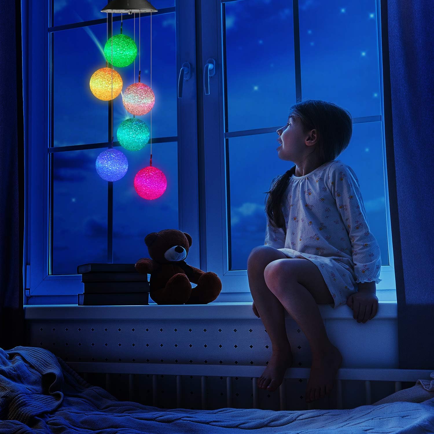 - 【Solar Powered Wind Chimes】 Featuring a unique design with 6 ball lights charge automatically in the daytime and light up at night, free your hands, new version solar panel absorbs energy quickly, the solar Christmas lights can last up to 8-10 hours after fully charged.(Easter Lights, Easter Decorations, Christmas Lights, Christmas Decorations, Gift for Mom, Gifts for Wife, Gifts for Girlfriend, Gifts for Grandma, Mom Gift, Grandma Gift, Birthday Gift for Mom, Birthday Gift for Grandma)