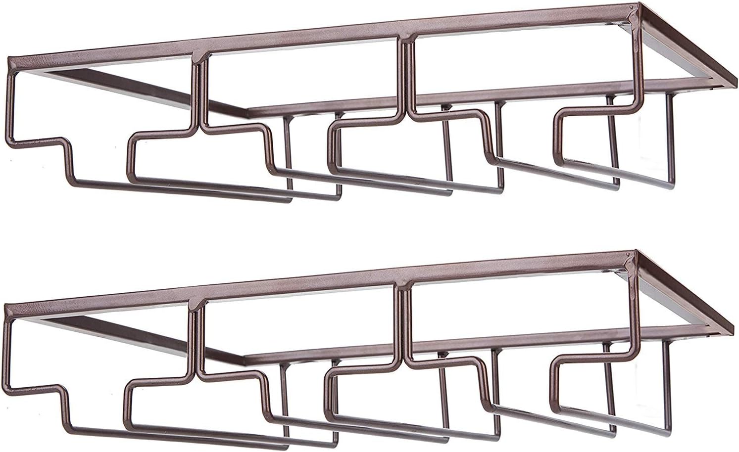 Wine Glass Rack - Under Cabinet Stemware Wine Glass Holder Glasses Storage Hanger 2 Pack Metal Organizer for Bar Kitchen Brown