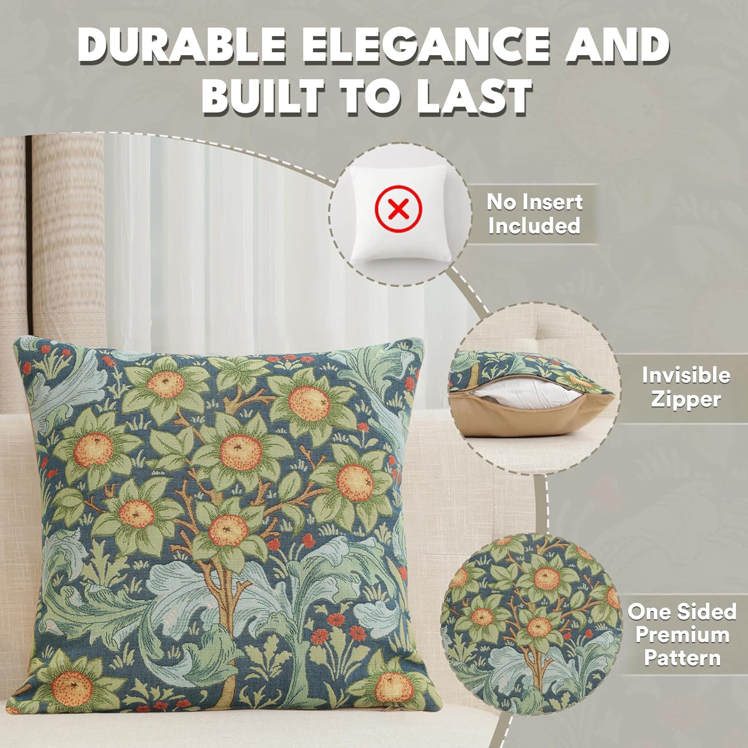 - Timeless Durability: Elevate your decor with our skin-friendly William Morris pillow covers 19βX19β, where quality and style come together. A sturdy hidden zipper ensures easy pillow insertion/removal, while the overlock stitches prevent seam ripping. Unlike thin printed cushion covers prone to tearing, our decorative pillows for couch with a super-soft backside are crafted with thick premium threads for long-lasting quality. THE PACKAGE INCLUDES A SINGLE TAPESTRY PILLOW COVER WITHOUT AN INSERT