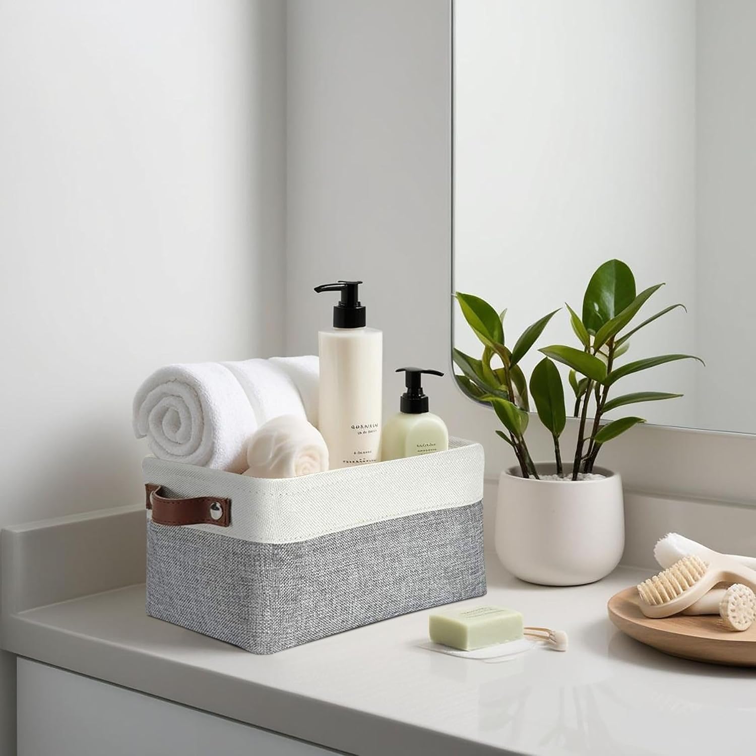 DECOMOMO Small Storage Basket, Closet Storage Bins, Baskets for Organizing Shelves (Grey & White, Small - 6 Pack)