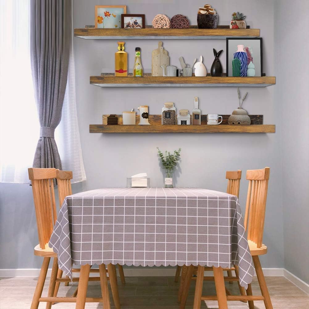 Giftgarden 36 Inch Large Floating Shelves for Wall Set of 3, Rustic Picture Ledge Wall Shelf for Bedroom Kitchen Bathroom Living Room Nursery Display, 3 Different Sizes