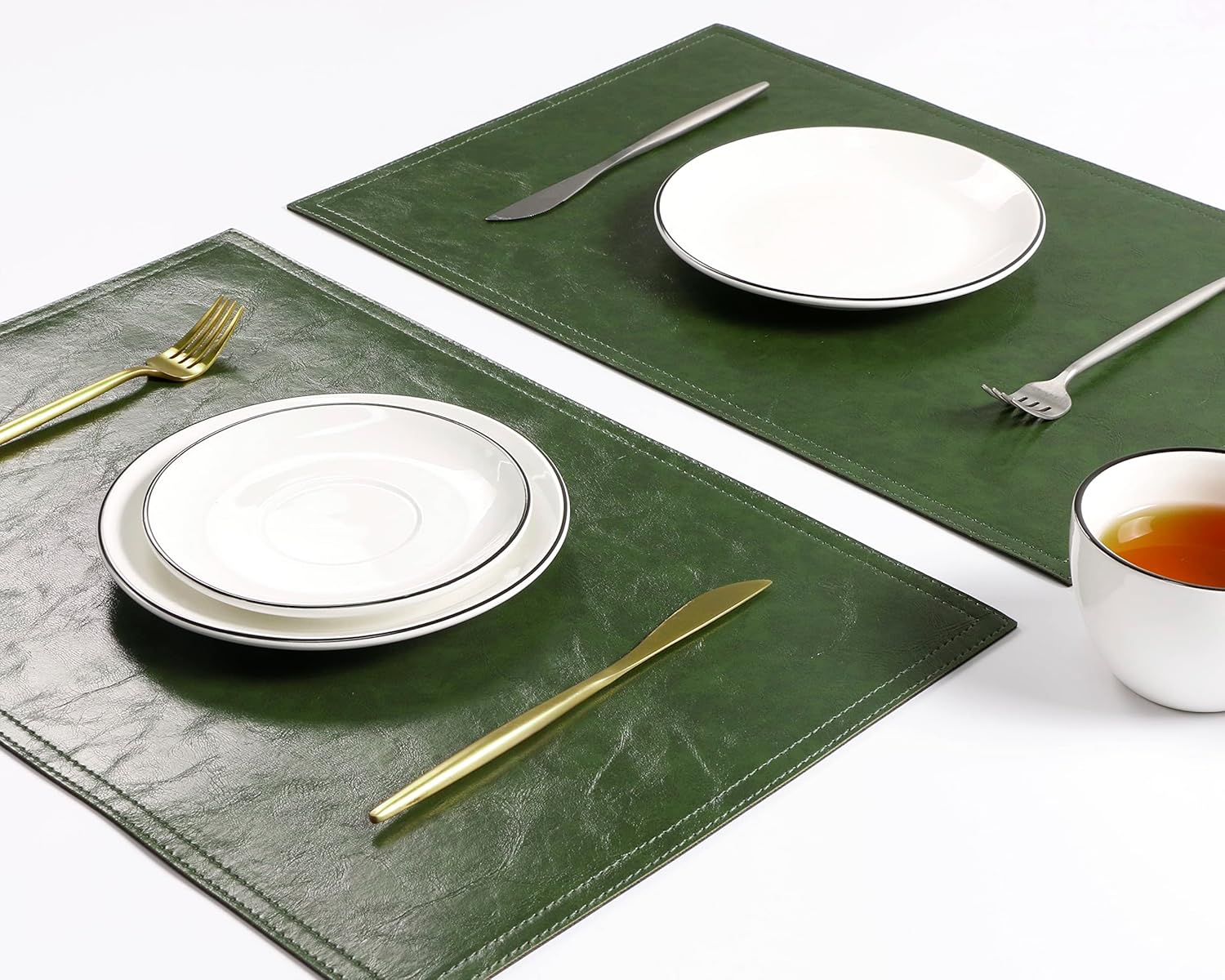 Waterproof PU Placemats, Faux Leather Dining Table Mat, Set of 4, Easy to Wipe Off Scrub Vinyl Mat, Heat & Stain Resistant for Office Conference Table, Home Decor