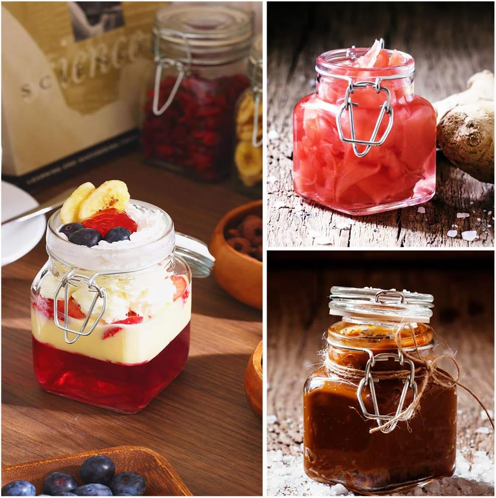 - Great Spice Jars - Clear square glass jars are prefect size to be used as glass spice jars. Airtight Glass mini mason jar storage containers help you adding your personal touch to your homemade spice jar set, Herb jars, seasoning jars, herb storage containers, bath salt jars, flip top jar, condiment jar, kitchen storage jars.