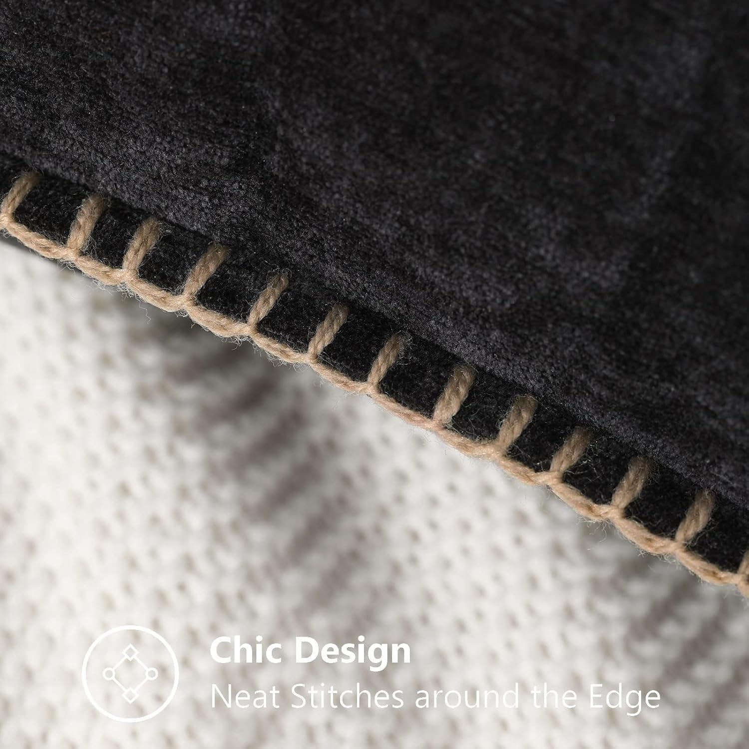 decorUhome Chenille Soft Throw Pillow Covers 20x20 Set of 2, Farmhouse Velvet Neutral Decorative Euro Pillow Covers with Stitched Edge for Couch Sofa Bed Home Decor, Black