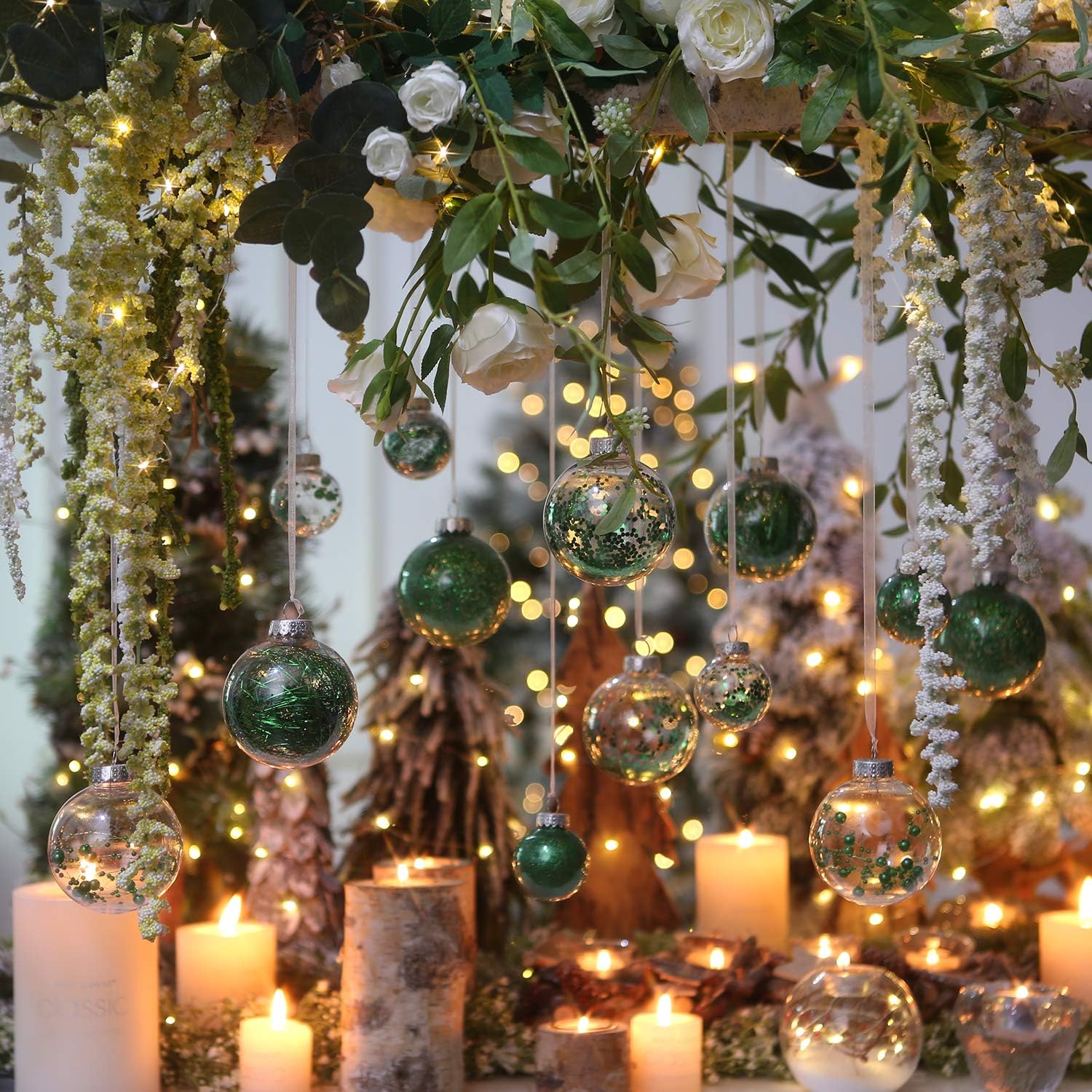- TRANSPARENT & SPARKLING - These Christmas ball ornaments feature clear glaze base with sparkling decorations like glitter, sequins, tinsel and beads to provide a stunning shimmering look in the light. They will be perfect for decorating your home and become part of your holiday tradition