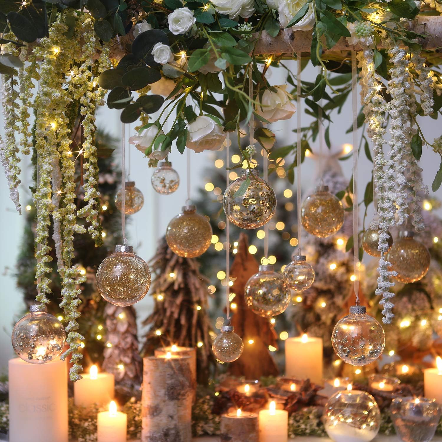 - TRANSPARENT & SPARKLING - These Christmas ball ornaments feature clear glaze base with sparkling decorations like glitter, sequins, tinsel and beads to provide a stunning shimmering look in the light. They will be perfect for decorating your home and become part of your holiday tradition