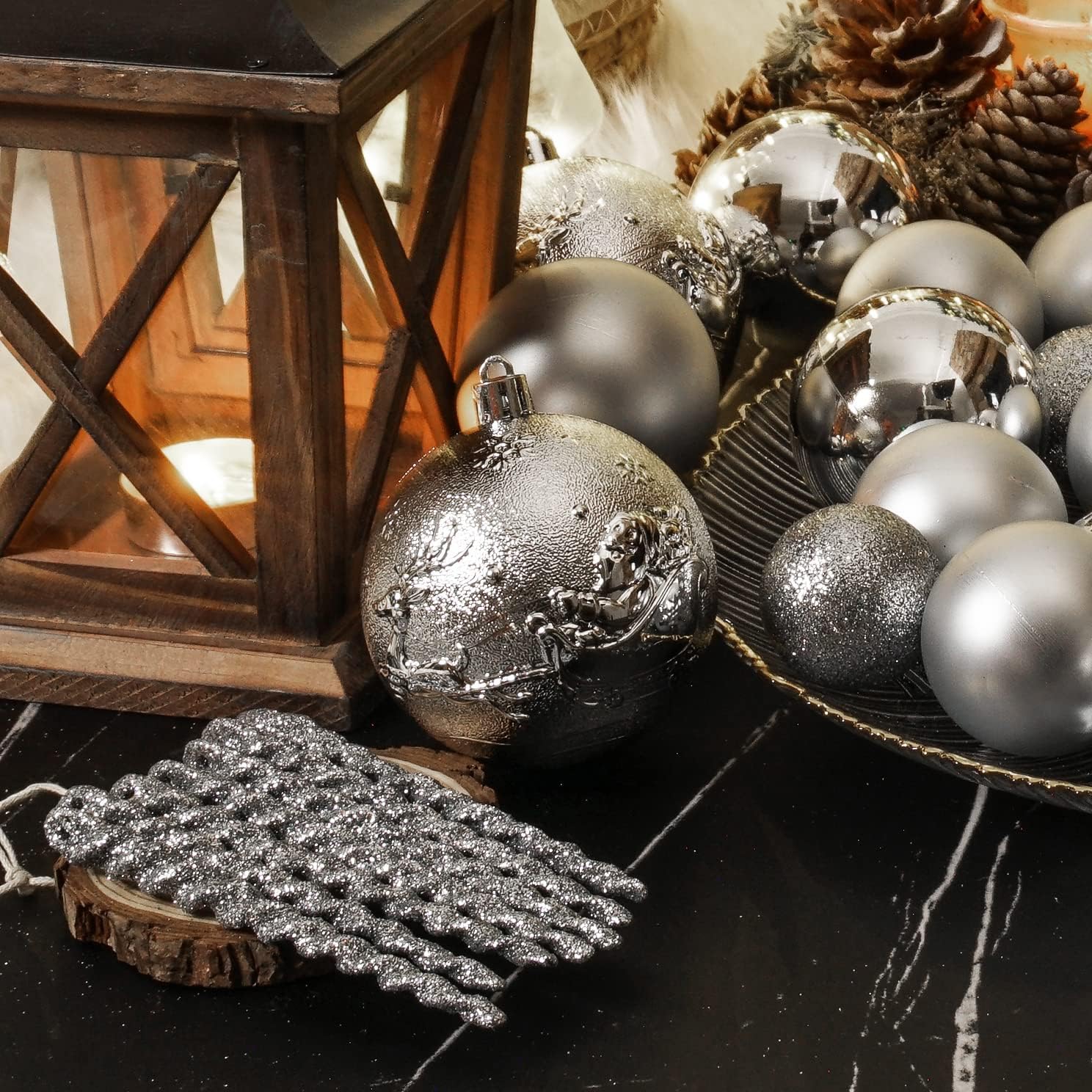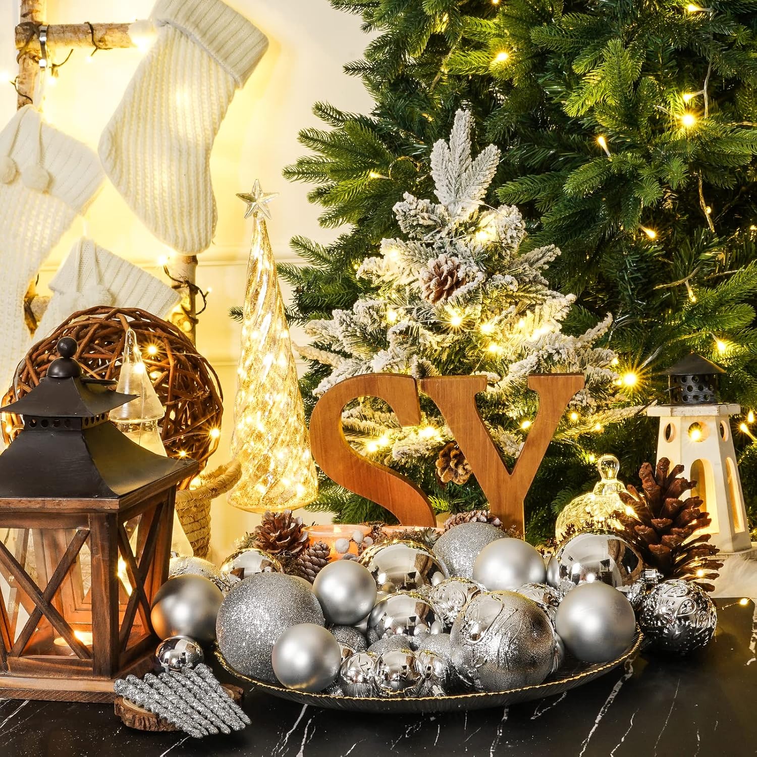 Christmas Ball Ornaments for Christmas Decorations - 41 Pieces Xmas Tree Silver Shatterproof Ball Ornaments with Hanging Loop for Holiday and Seasonal Decoration