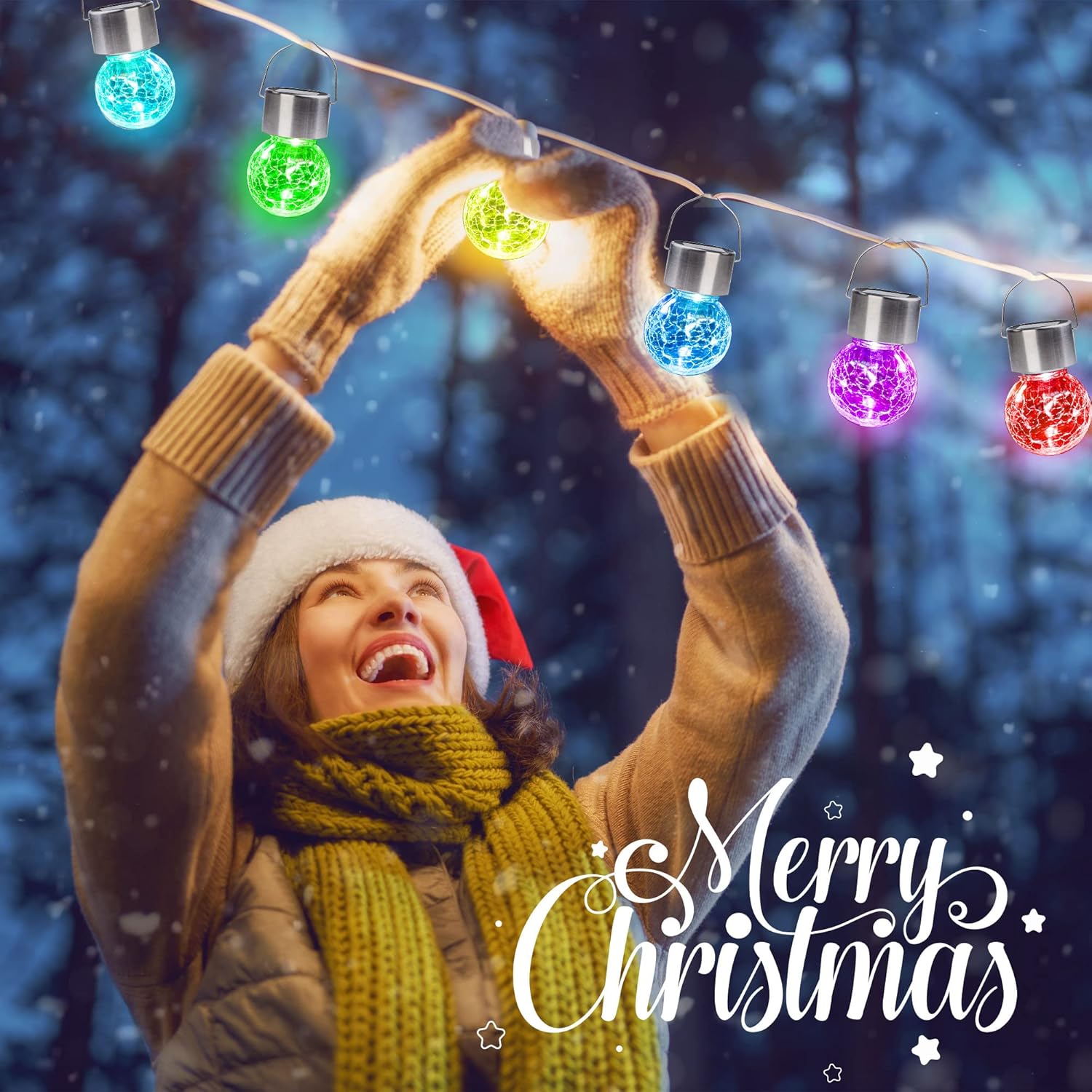 Solpex Hanging Solar Lights Outdoor, 8 Pack Decorative Cracked Glass Ball Light, Solar Powered Waterproof Globe Lighting, Hanging Globe Solar Lights for Garden, Yard, Patio, Lawn, Flower Bed