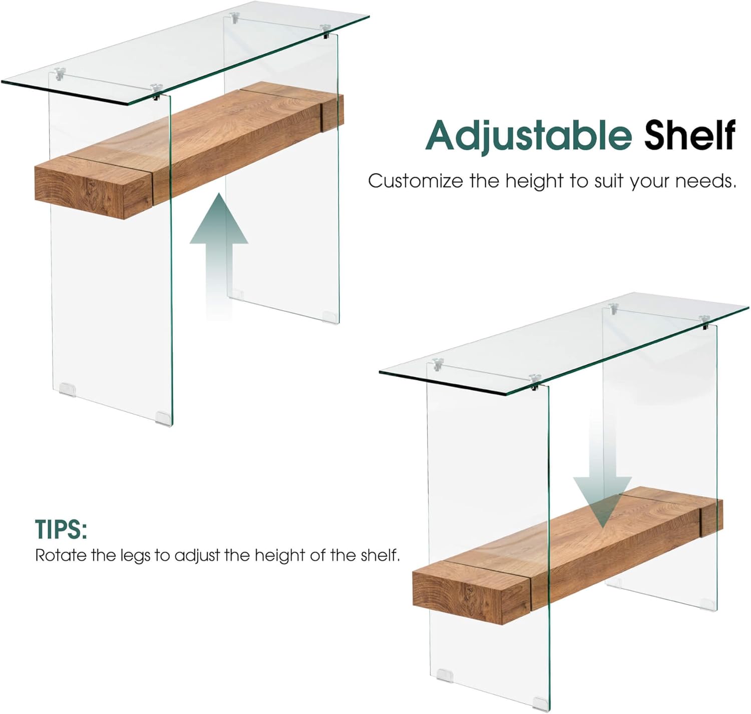 ivinta Glass Console Table with Storage, 39.4" Modern Narrow Entryway Table for Living Room, Entrance, Hallway or Bedroom 5101 (Natural Wood)