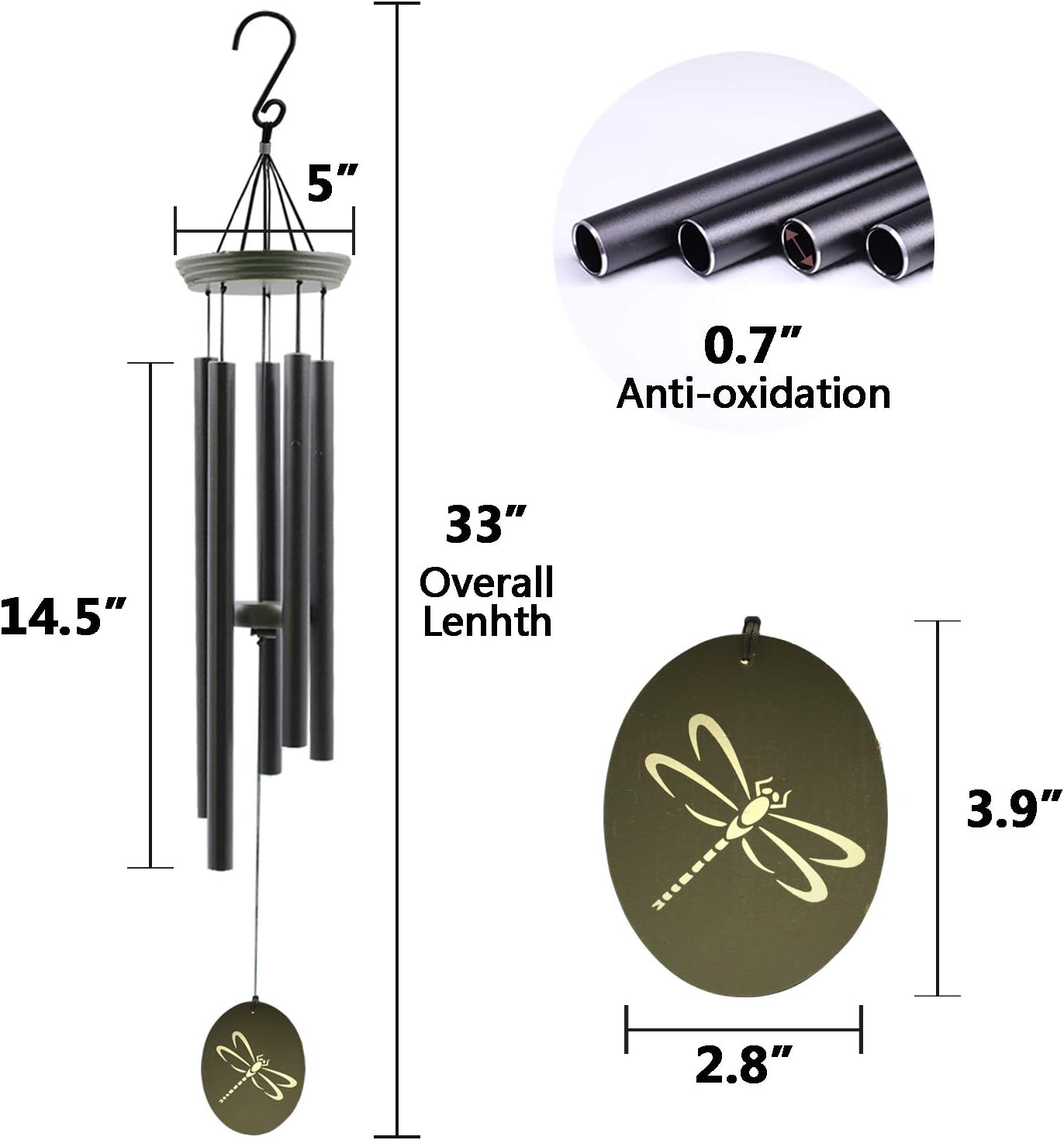 Wind Chimes for Outside, WindChimes Outdoor Tuned Soothing Melody, Wind Chimes Gifts for Mom/Grandma,Wind Chime Outdoor Decoration, Patio, Garden, Yard. (33" Green Dragonfly)