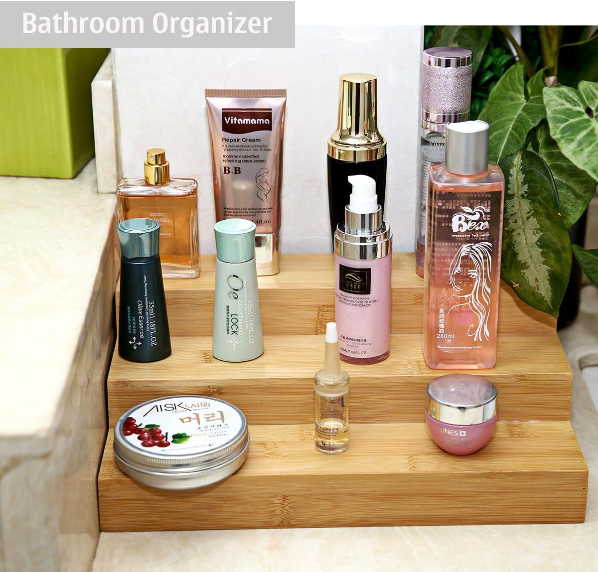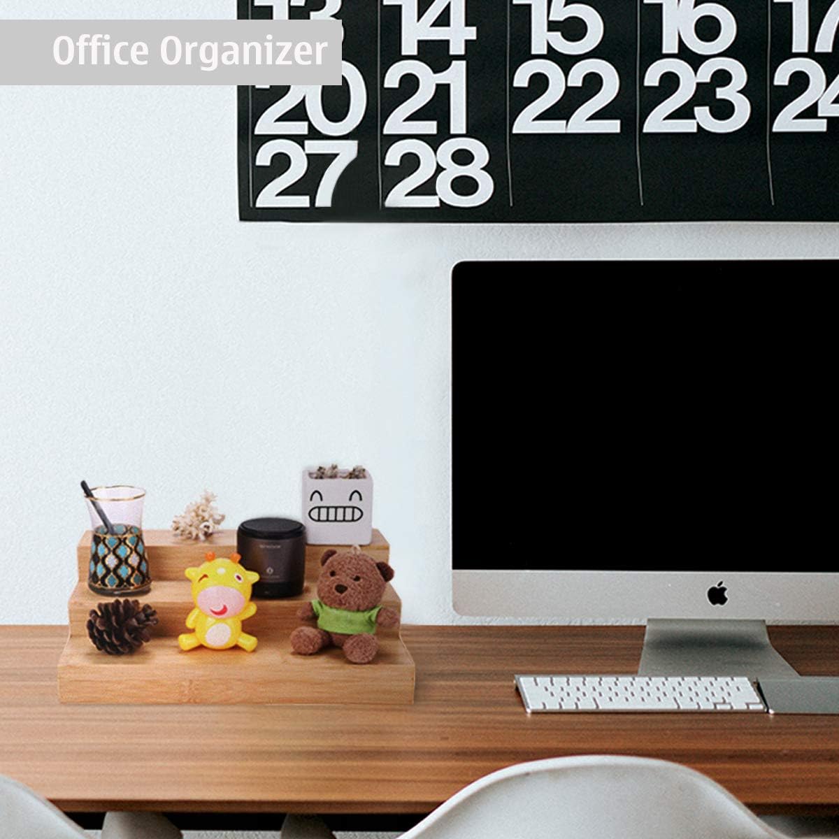Step Spice Rack Set Cabinet Shelf Spice Holder, 3-Tier Bamboo Spice Organizers for Cabinet/Pantry/Cupboard/Countertop, Step Display Rack for Toy Suitable for Home/Office, 2 Pack Step Rack