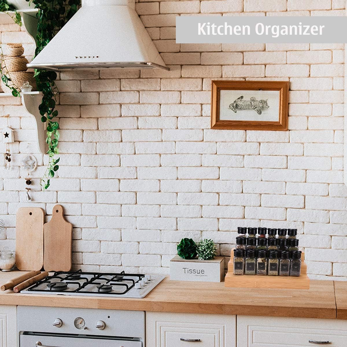 - 【Multipurpose Use and Save space】The stepped design is neat, clear and convenient, perfect for kitchen and home organizer. Providing plenty of room to organize spice jars, cans, sauces, jelly jars, vitamin, medicine bottles, essential oils, lipstick, nail polish, perfume, skin care products, office supplies, small flower pots,and any small items. Both cabinets and countertops are suitable