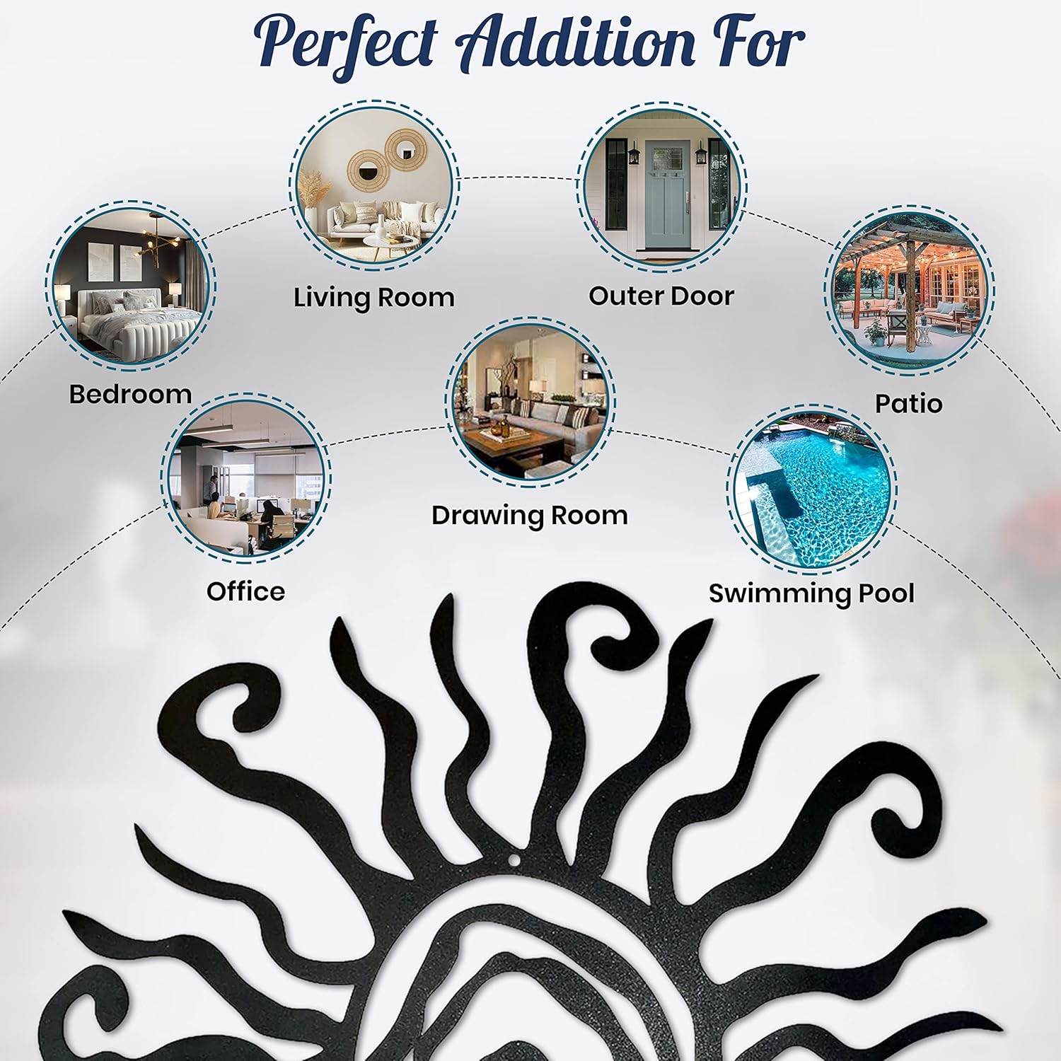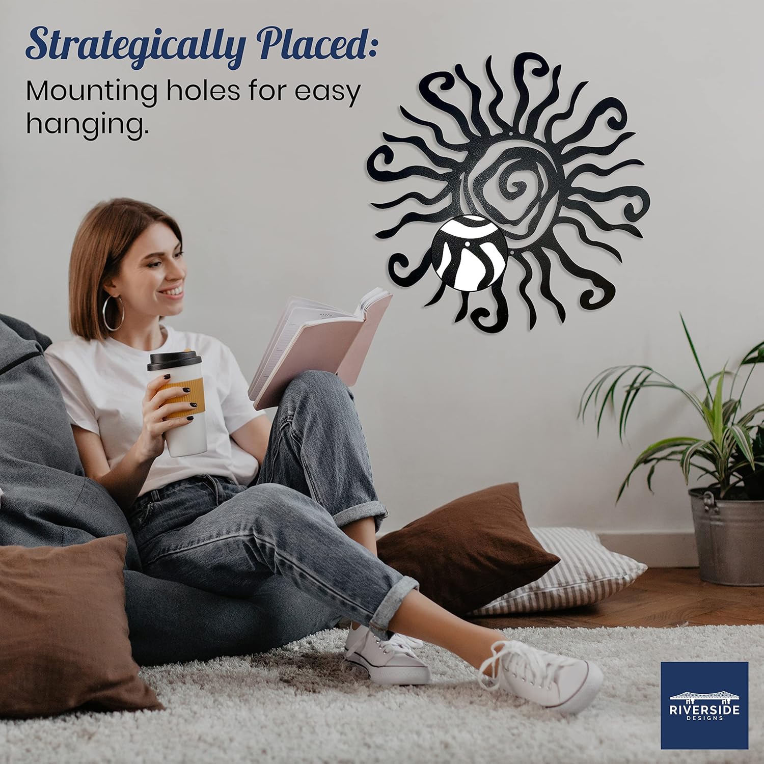 Riverside Designs Wacky Sun Metal Wall Art Indoor/Outdoor Decor - 18" Black Rust Proof Wall Sculpture - Made in USA - Ideal for Bedroom, Garden, Home, Patio and Farmhouse