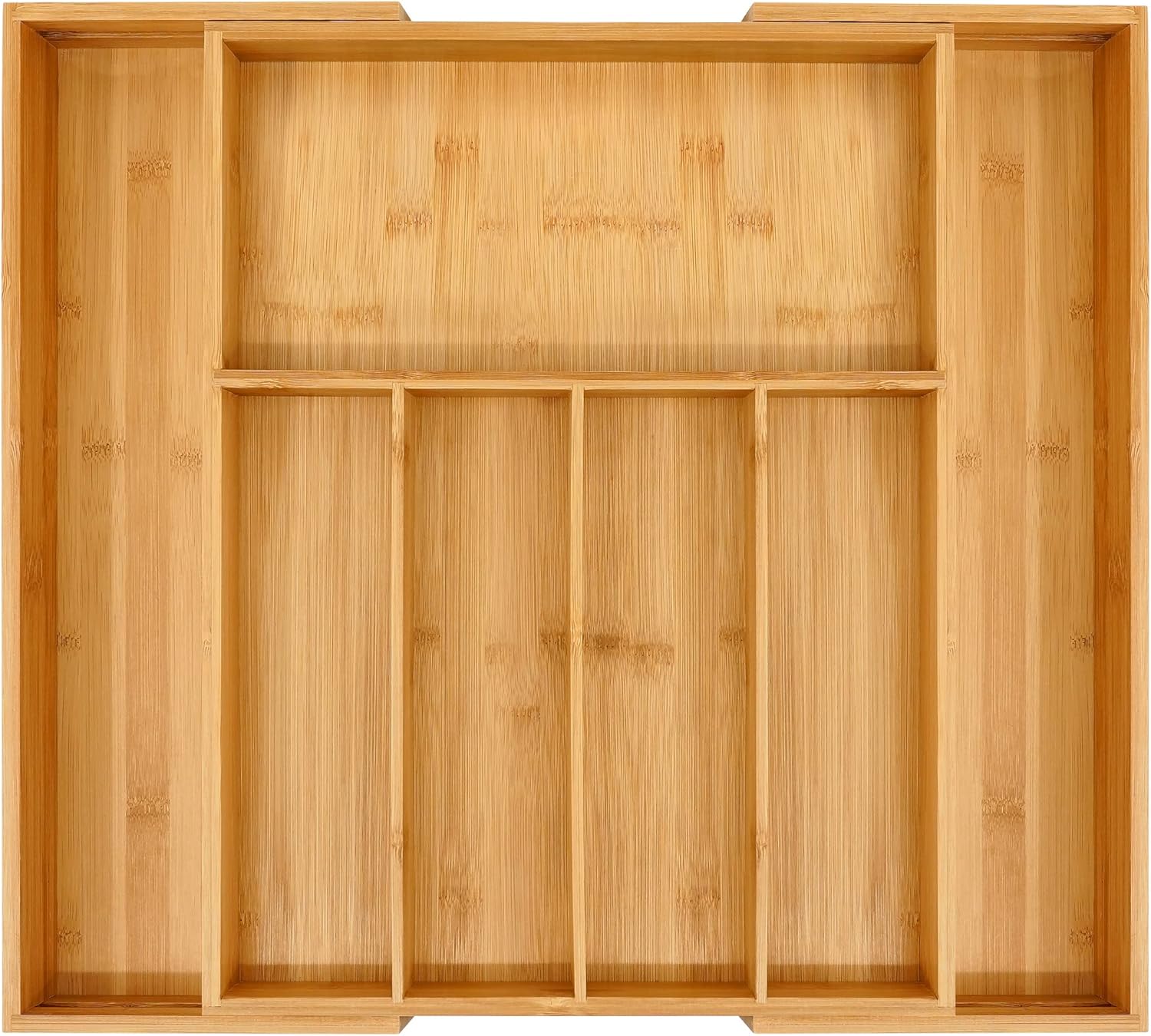 - Bamboo Material: Our kitchen bamboo silverware drawer organizer is made of moso bamboo; The beautiful color and the timeless design make it fit perfectly into your home decor