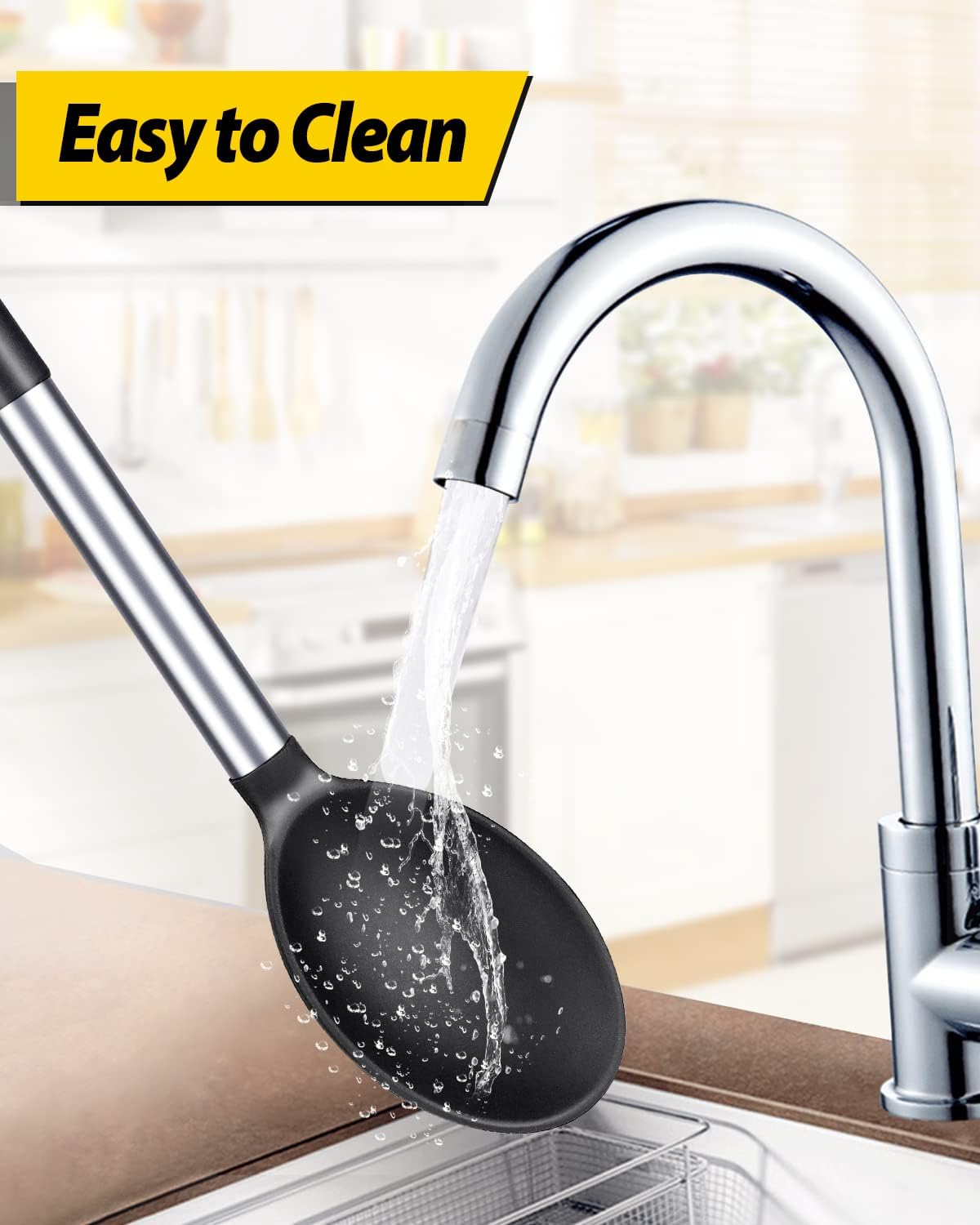 - Thoughtful Design : The good-quality 18/8 stainless steel keeps you away from the trouble of kitchen utensils rusting or breaking; This anti-scald silicone handle is not easy to conduct heat and is more comfortable to hold than traditional utensils