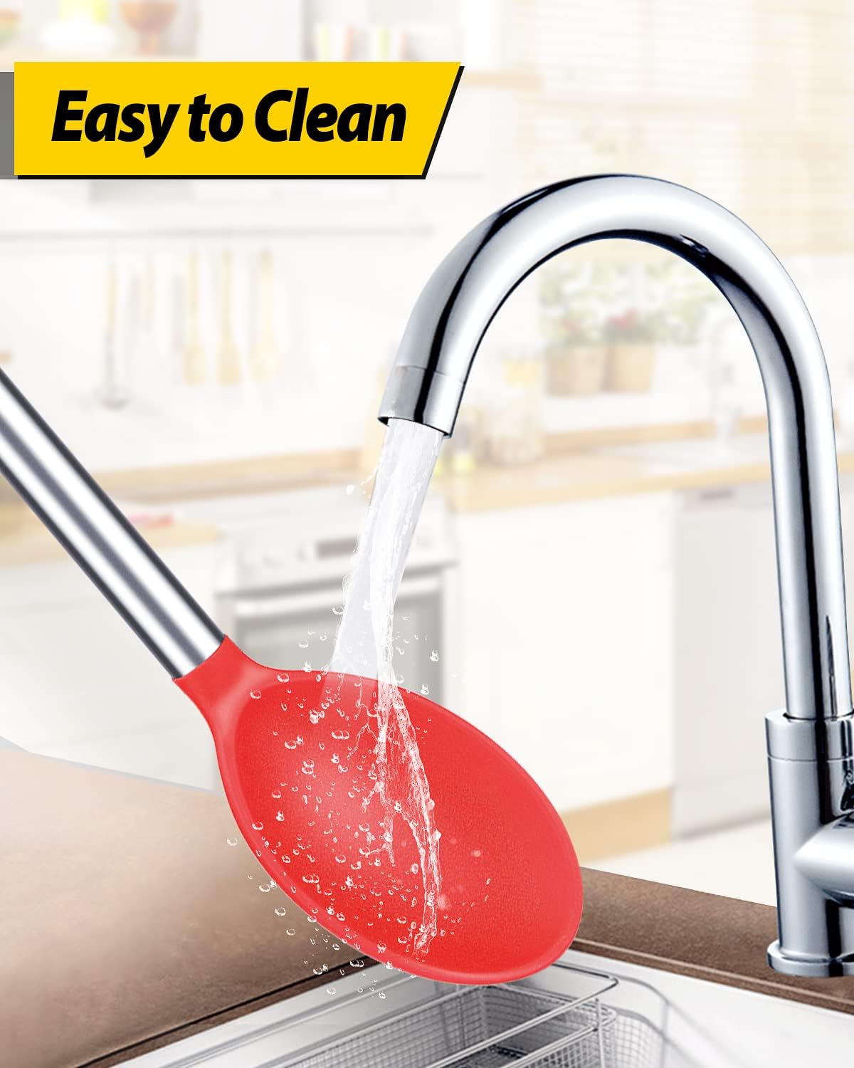 - More Safe and Healthy : Our silicone spoons are made of food-grade silicone, free of BPA;Even at high temperatures, there is no need to worry about melting or deforming;And the soft silicone head won't scratch the coating, it can better protect your pot