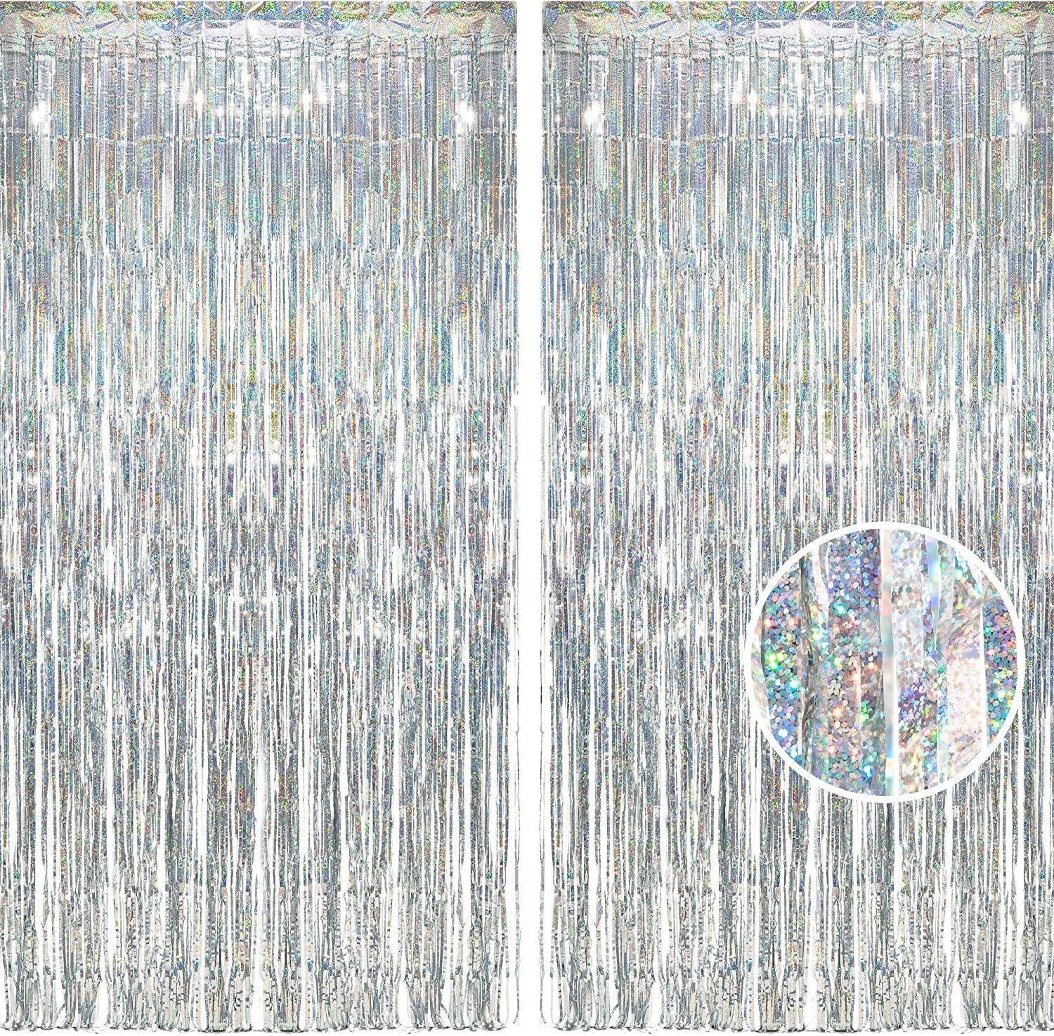 - The beautiful silver tinsel backdrop curtain is good for adding shiny atmosphere as decorations for parties, like 25th Birthdays Party, Bachelorette Party, Engagement Party, Bridal Shower Party, 60th Anniversary Party, Mother’s Day Party, Valentine’s Day, Prom Party, Homecoming Party, Theme Party, Christmas Party, Halloweens Party, New Years Eve Party and more. They are also suitable for ceremony, celebration, stage backdrop, dance backdrop etc.