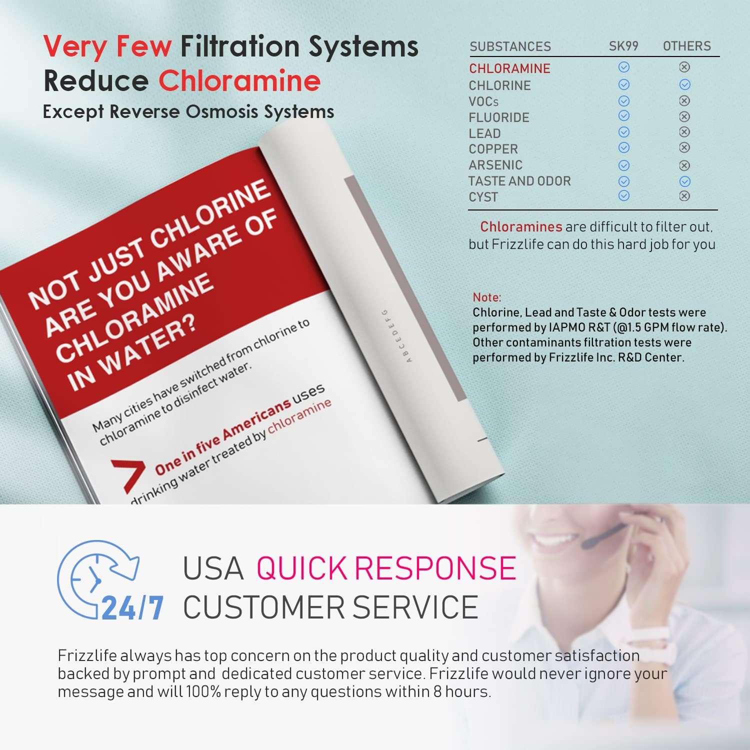 - ăMoney Saver & Eco-FriendlyăFrizzlife SP99 under sink water filter system is designed with the concept of convenience and cost-effective. When replacing the filters, You donât have to throw away the whole plastic housing but only the core filters inside. Choose Frizzlife to save more waste to the earth, and enjoy the great-tasting water in a more economic and greenway! Search replacement filters:M3001(Asin#B0855G76RK),M3002(Asin#B0855MPDR1),M3003(Asin#B0855VDQGP)