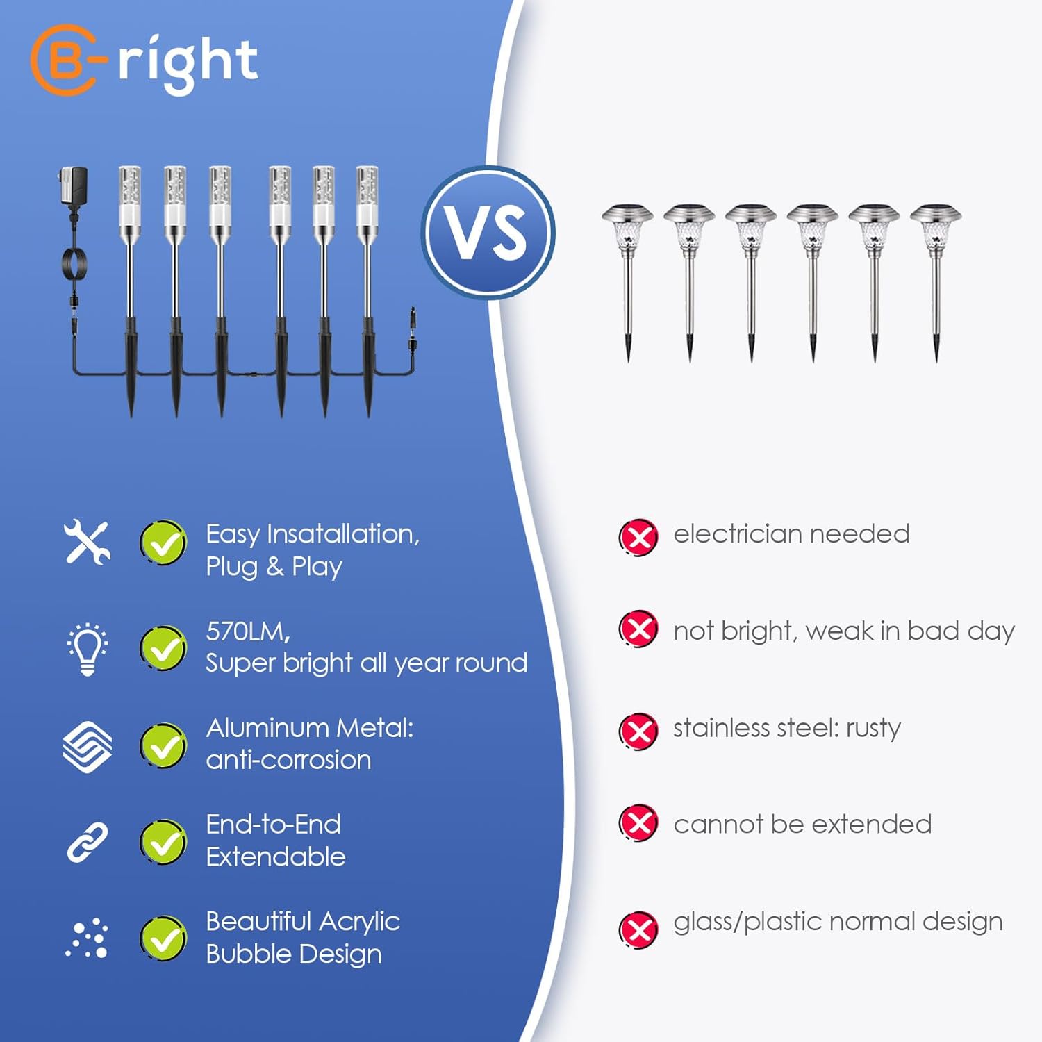 B-right Outdoor Pathway Lights, 6 Pcs LED Path Lights AC Plug 12V Low Voltage Landscape Lighting 570 Lumens, Extendable IP65 Waterproof Outdoor Garden Light for Patio Yard Walkway, Cool White 6000K