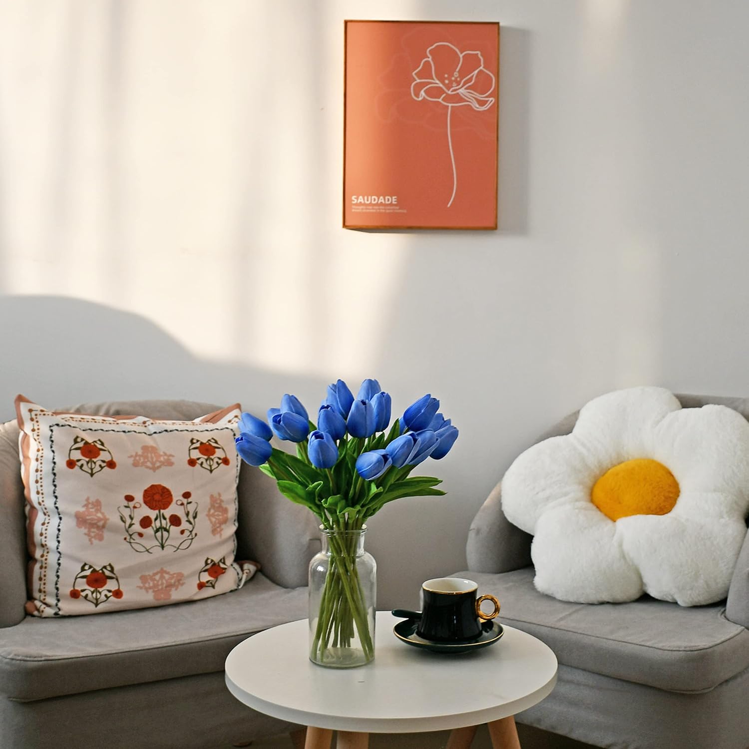 Mandy's Artificial Tulips 20 Stems Light Blue PU Faux Flowers for Wedding Home Decor 13.5 Inch