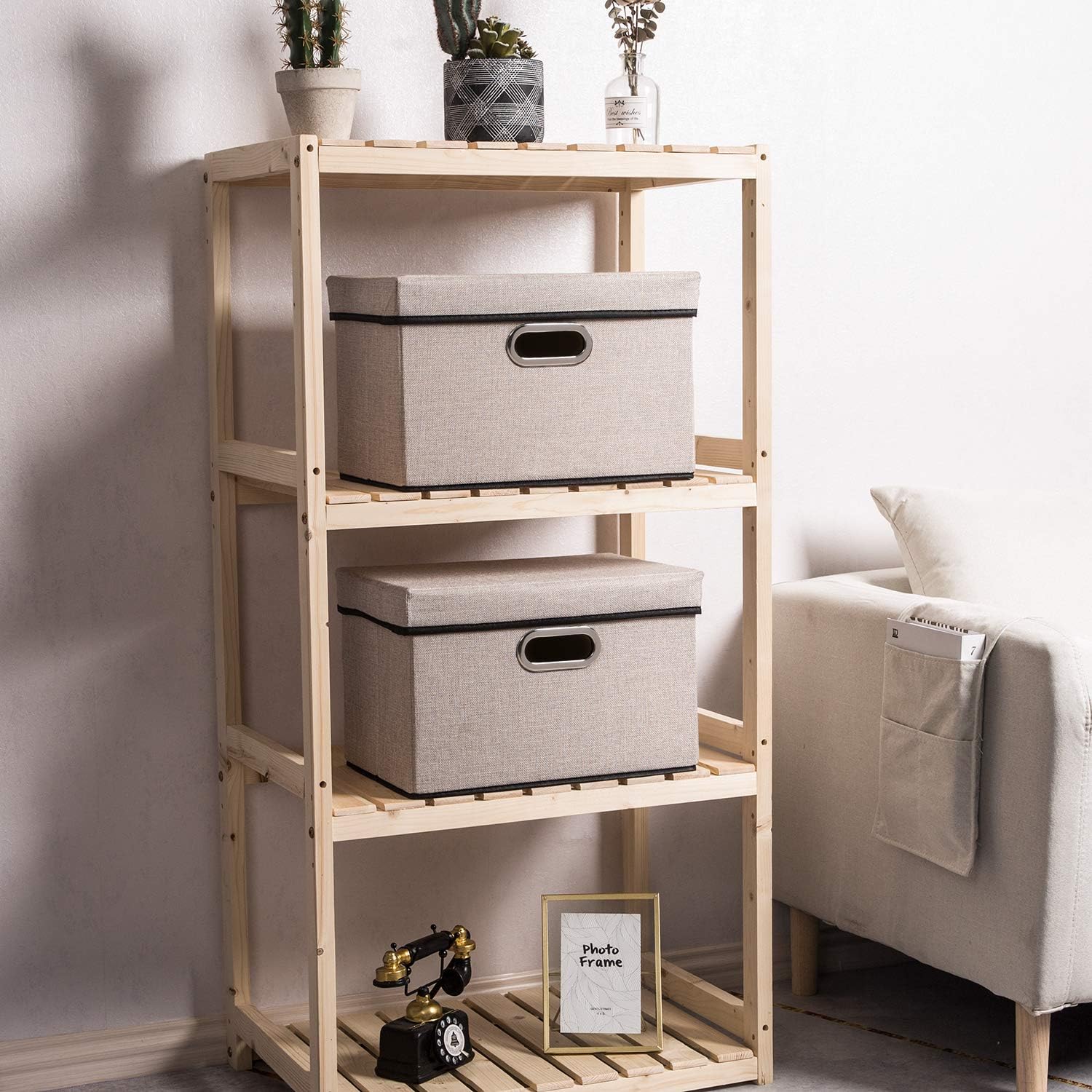 PRANDOM Foldable Storage Bin with Lid [3-Pack] Linen Fabric Decorative Storage Box Organizer Container Basket Cube with Handles Divider for Closet Office Living Room Light Grey(14.9x9.8x9.8)