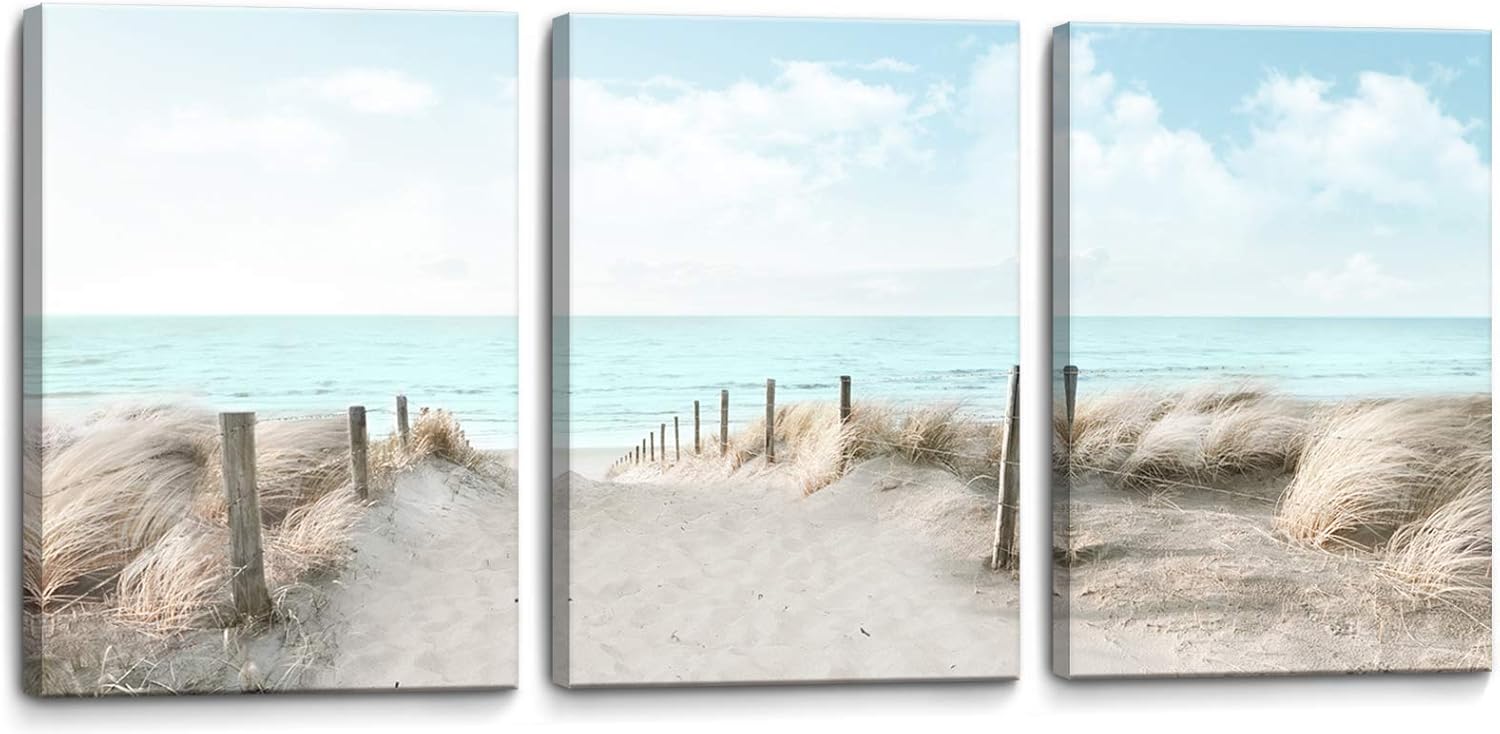 - SIZE: 16x24 inch x 3 panel, beach picture wall decorations. and canvas is wrapped around the frame. Can be hung directly with the mounting hardware.