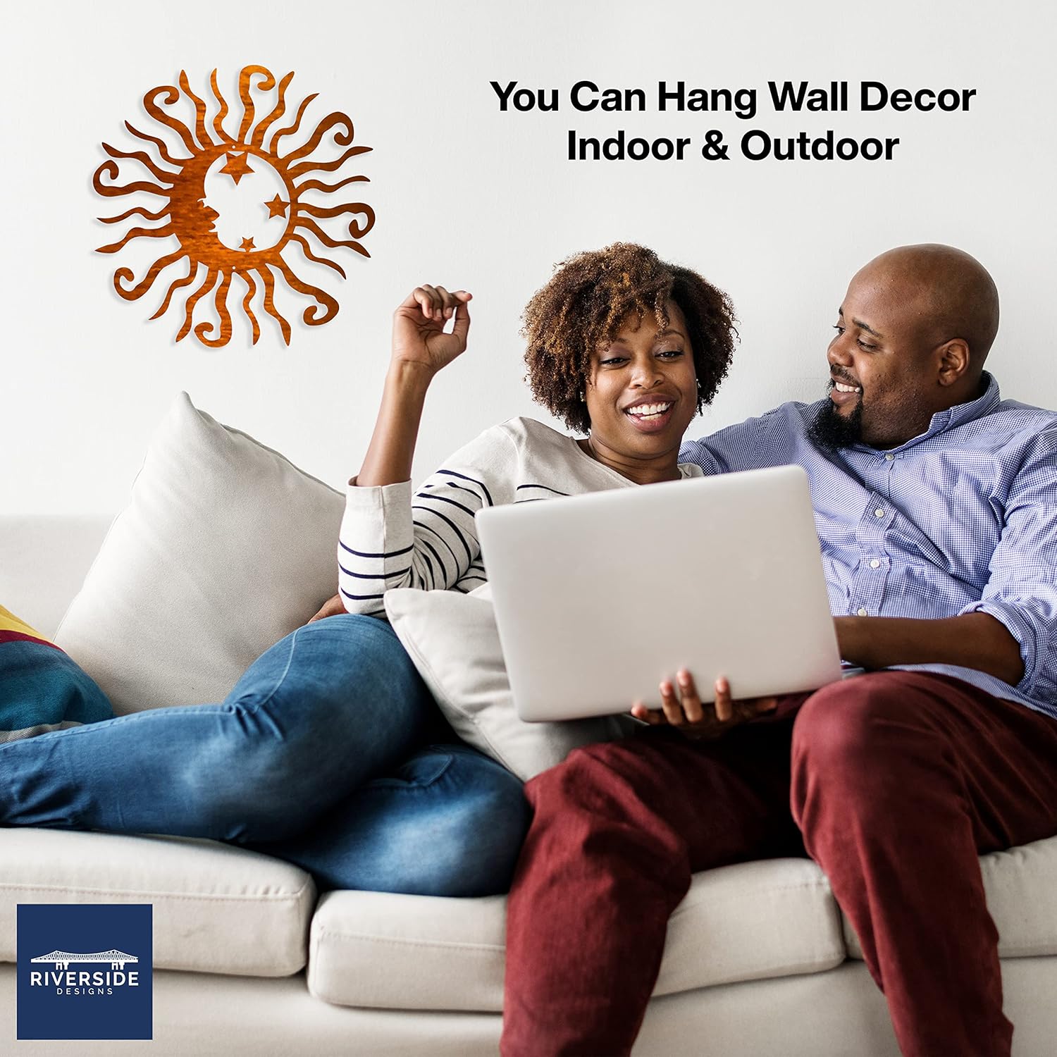 Riverside Designs Wacky Solar Moon Metal Wall Art Steel Outdoor Decor | Heavy-Duty and Waterproof | Made in USA (Copper, 30L x 30W)