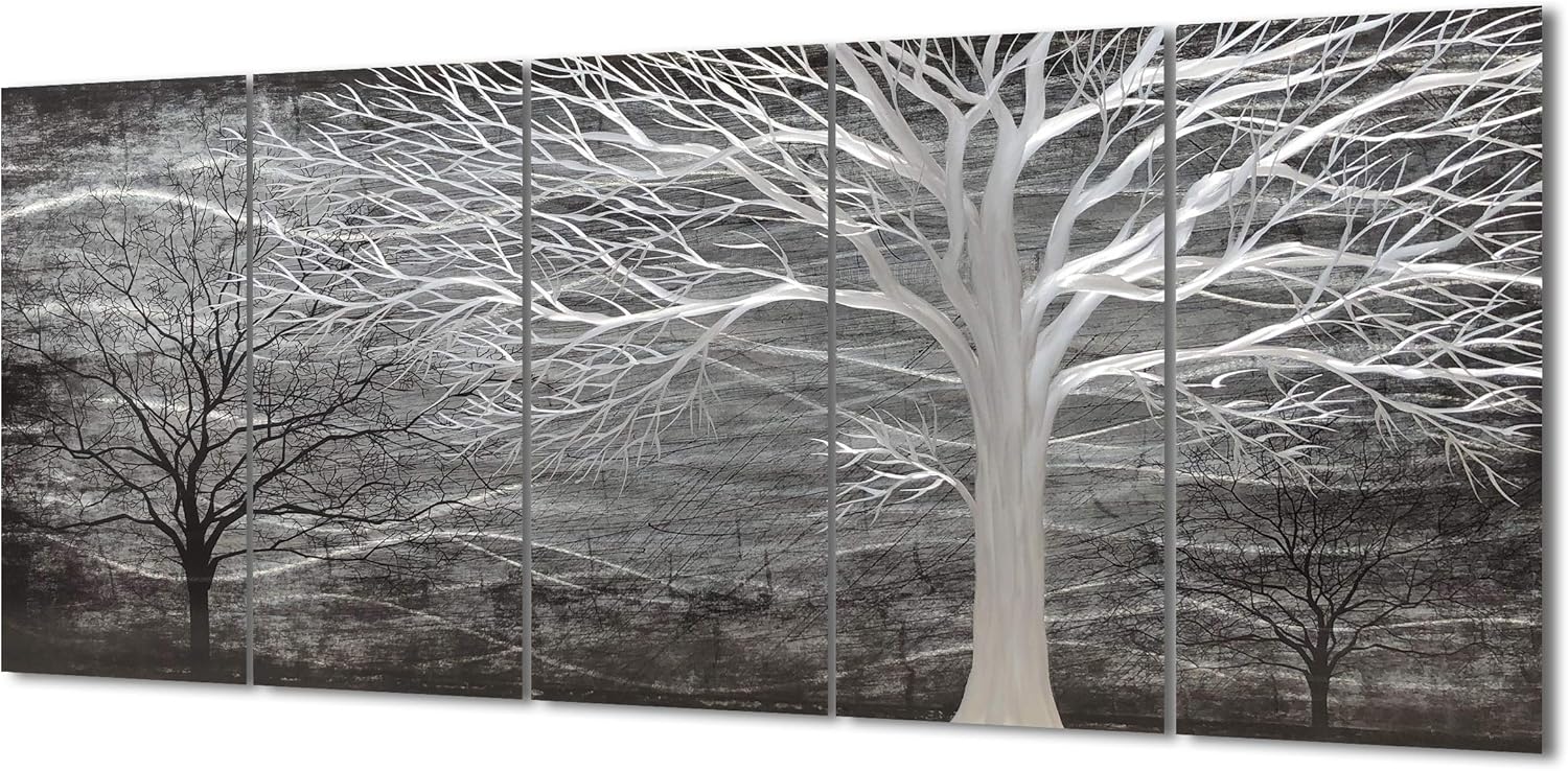 Yihui Arts Tree Metal Wall Art for Living Room Black Grey Silver Color Pictuers for Decor