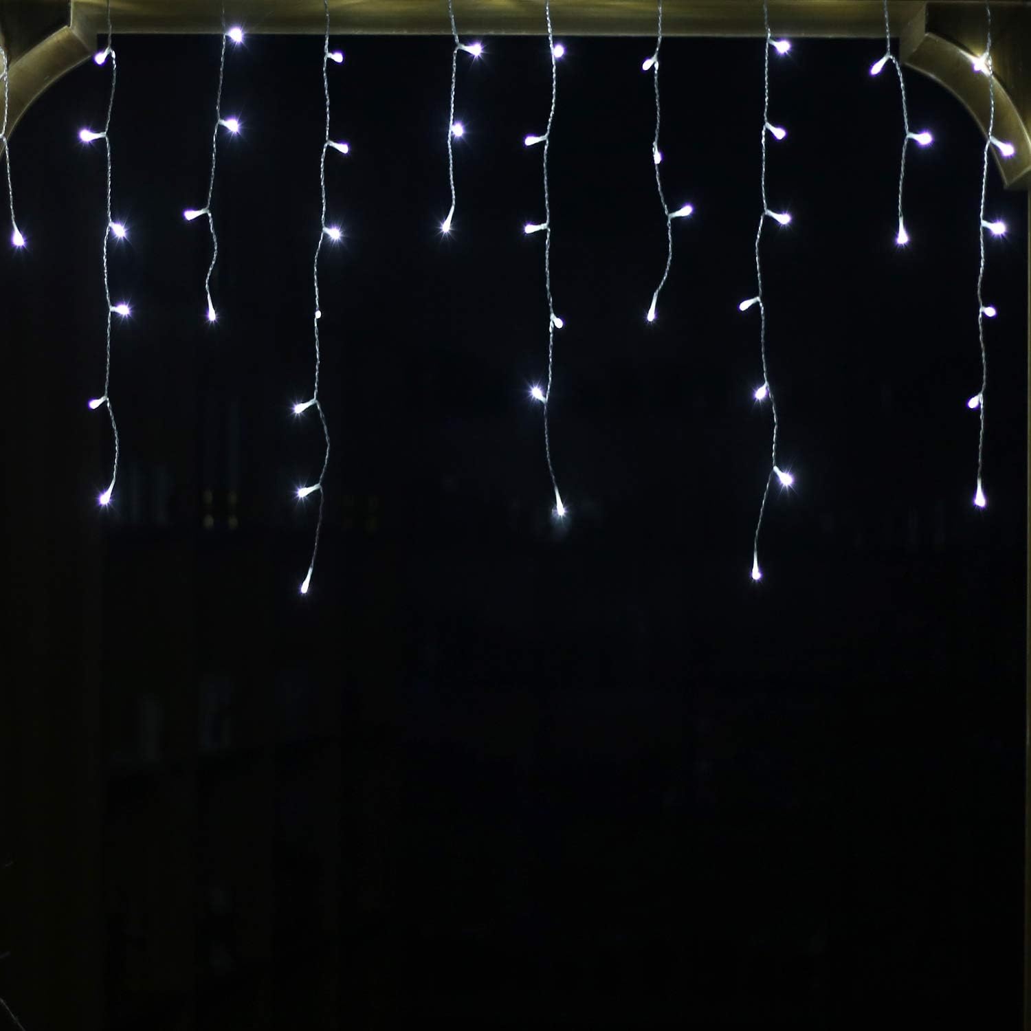 - Cool white 300Led Icicle lights,Icicle Style String Lights on white cable with 60 drops, display Horizontal Length:29.5ft / 9meters, LED Spacing: 3.9in / 10cmοΌ3 meter Independent extension cord.