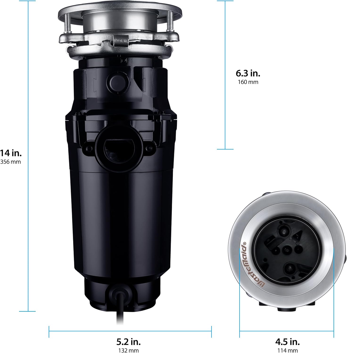 Waste Maid 10-US-WM-458-SL-3B Garbage Disposal Anti-Jam Stainless Steel Food Waste Grinding System, 3/4 HP Slim Line, Black