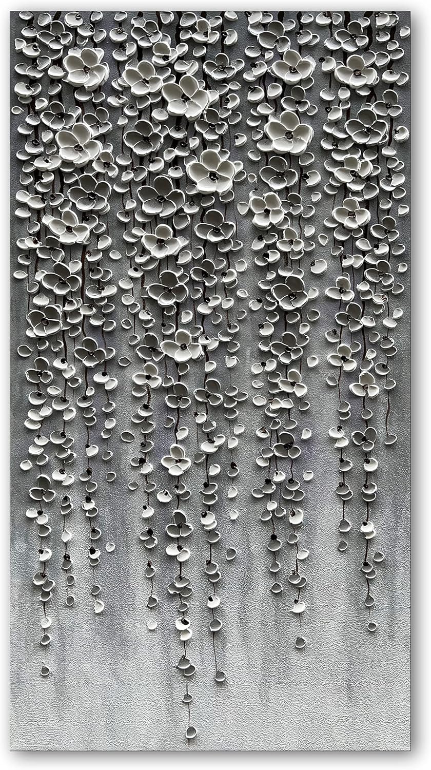 Epicler Modern Art Oil Painting,46x23 inches White Flower Wall Art Painting, Abstract Canvas Wall Art for Home Wall Decoration