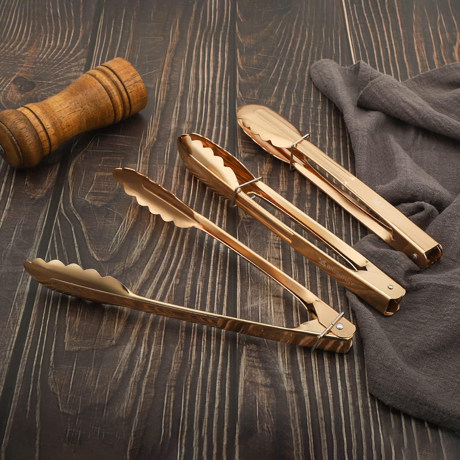 MSY BIGSUNNY 9 Inch Kitchen Food Tongs for Cooking and Serving- Aluminum - Set of 3 (gold-plated)
