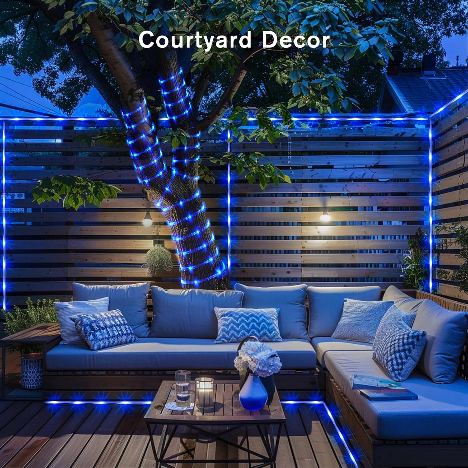 JMEXSUSS 2 Pack 100 LED Solar Rope Lights, IP65 Solar Rope Lights Outdoor Waterproof LED, 33ft 8 Modes PVC Tube Rope Light for Trampoline Xmas Fence Yard Walkway Path Garden(Blue)