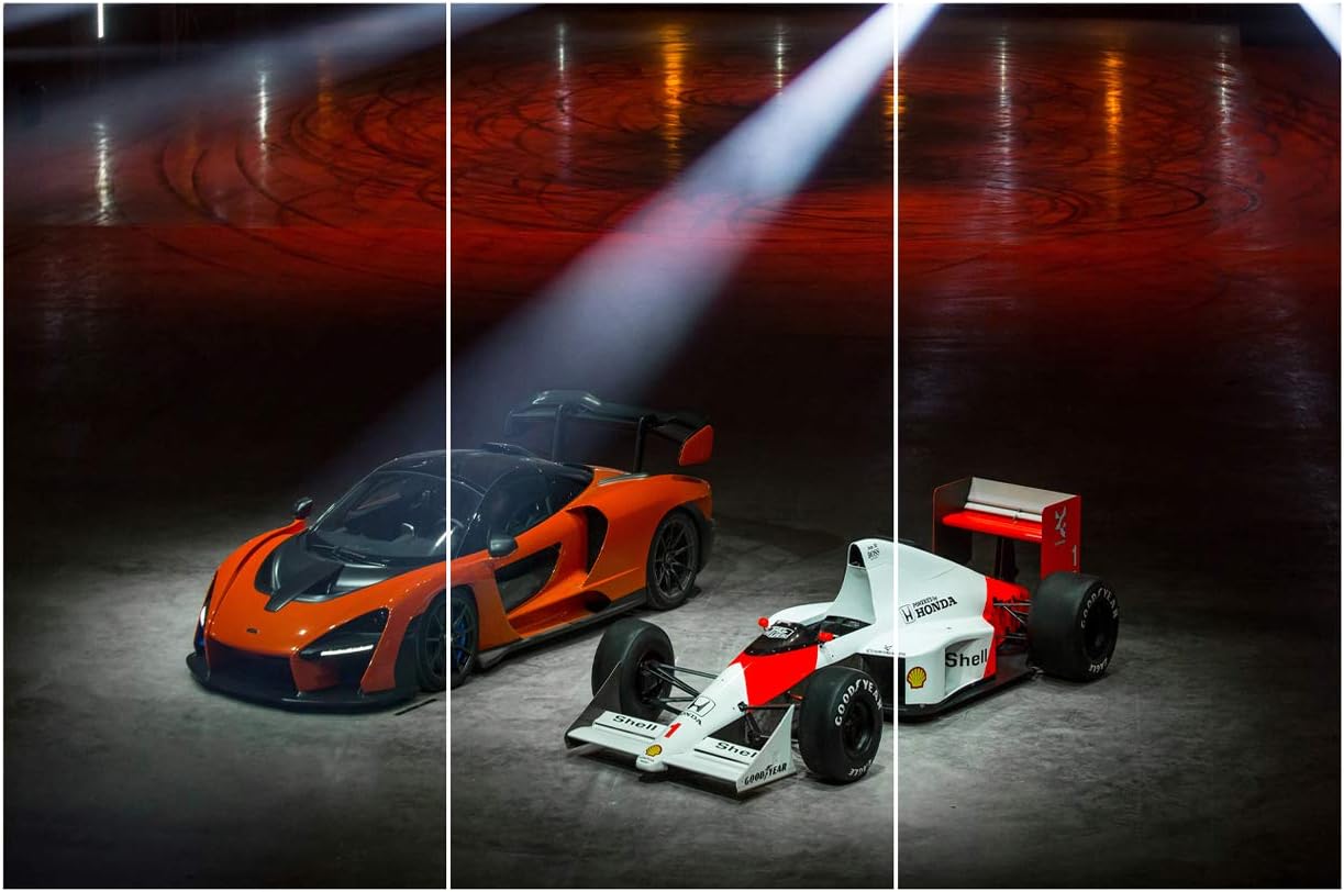 TUMOVO 3 Piece Red Car Canvas Wall Art - 40 x 20inch x 3 Panels - Modern Painting on Canvas - Framed - Wall Mount - HD Giclee Print - Living Room, Bedroom Decor