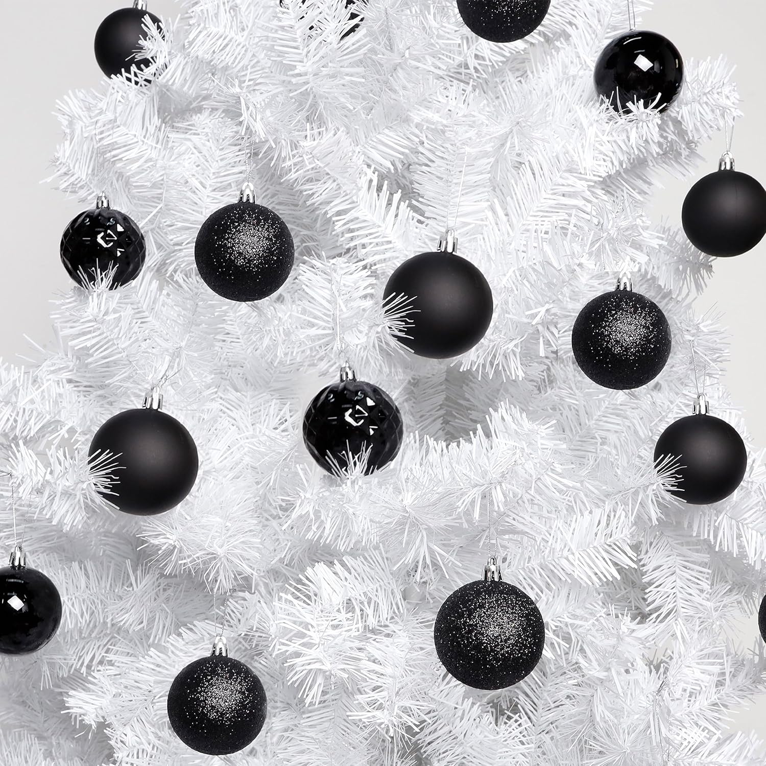 Lulu Home Halloween Ball Ornaments, 24 Ct 2.36" Pre-Strung Hanging Ornament Decorations, Shatterproof Plastic Balls for Holiday Party Wreath Garlands Trees, Black