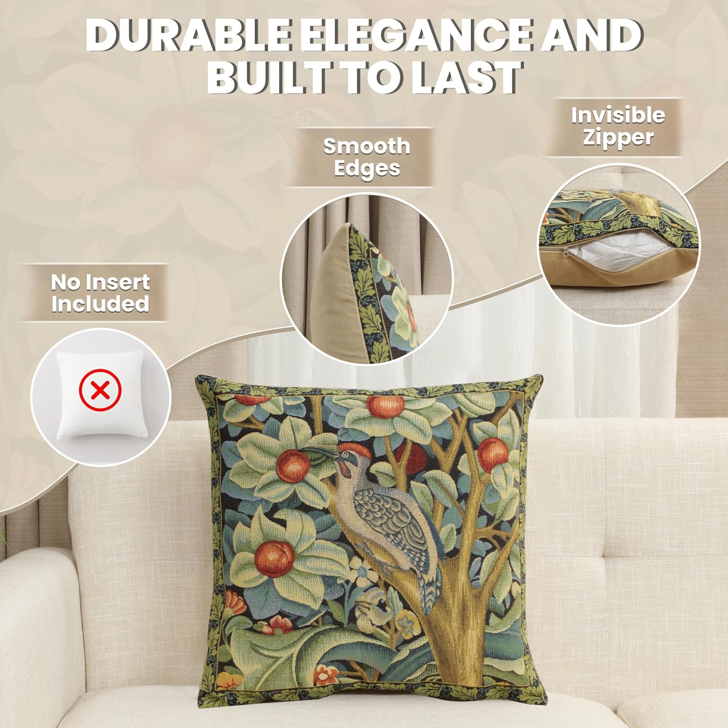 - Exclusive Design Excellence: The decorative pillow covers are made of high-quality jacquard woven fabric, 100% cotton for extreme comfort and durability. The designs of these William Morris pillow covers are woven with precision using the most vibrant colors. The zippers are hidden and overlock stitch seams create an appearance of sophistication while providing durability for any home decor