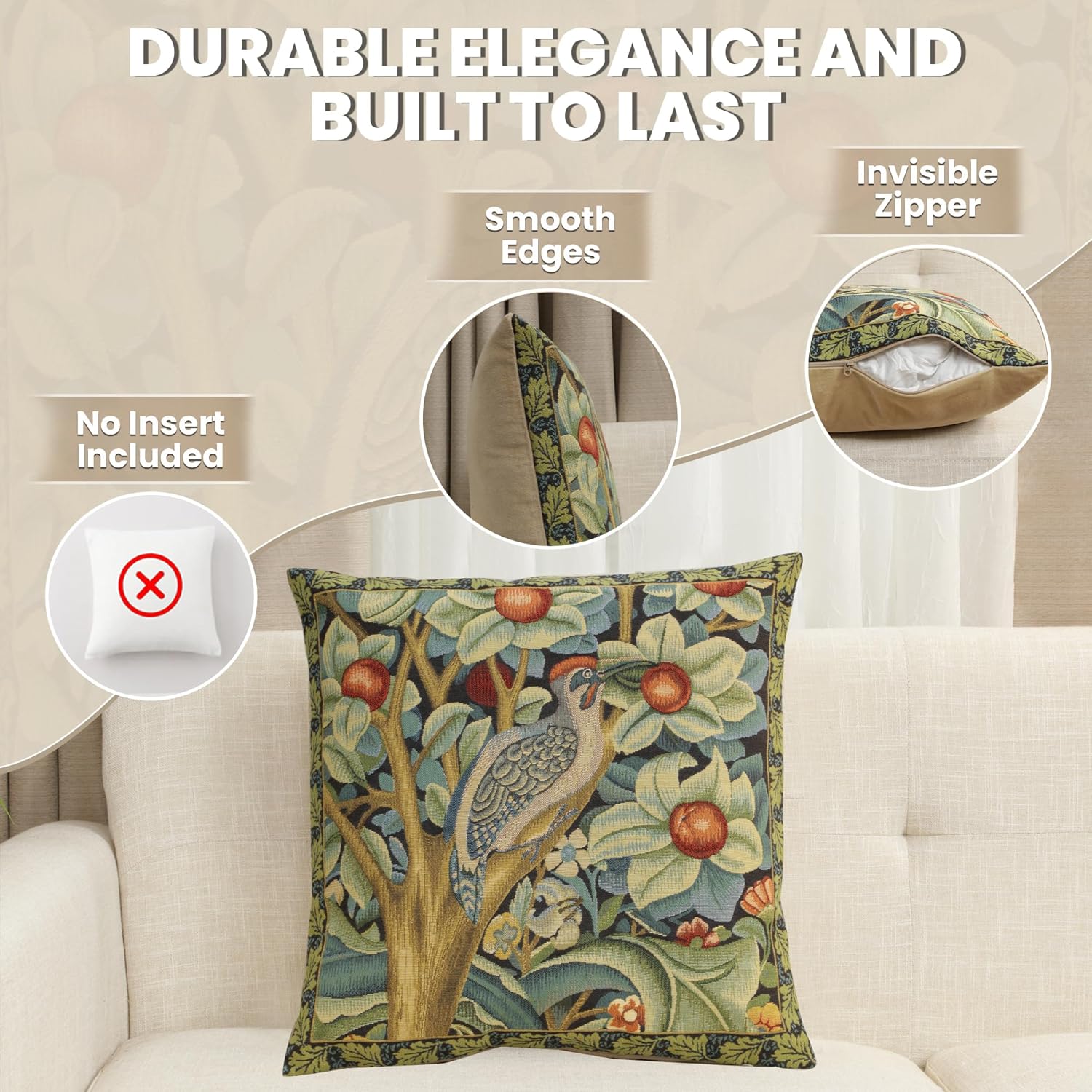 - Exclusive Design Excellence: The decorative pillow covers are made of high-quality jacquard woven fabric, 100% cotton for extreme comfort and durability. The designs of these William Morris pillow covers are woven with precision using the most vibrant colors. The zippers are hidden and overlock stitch seams create an appearance of sophistication while providing durability for any home decor