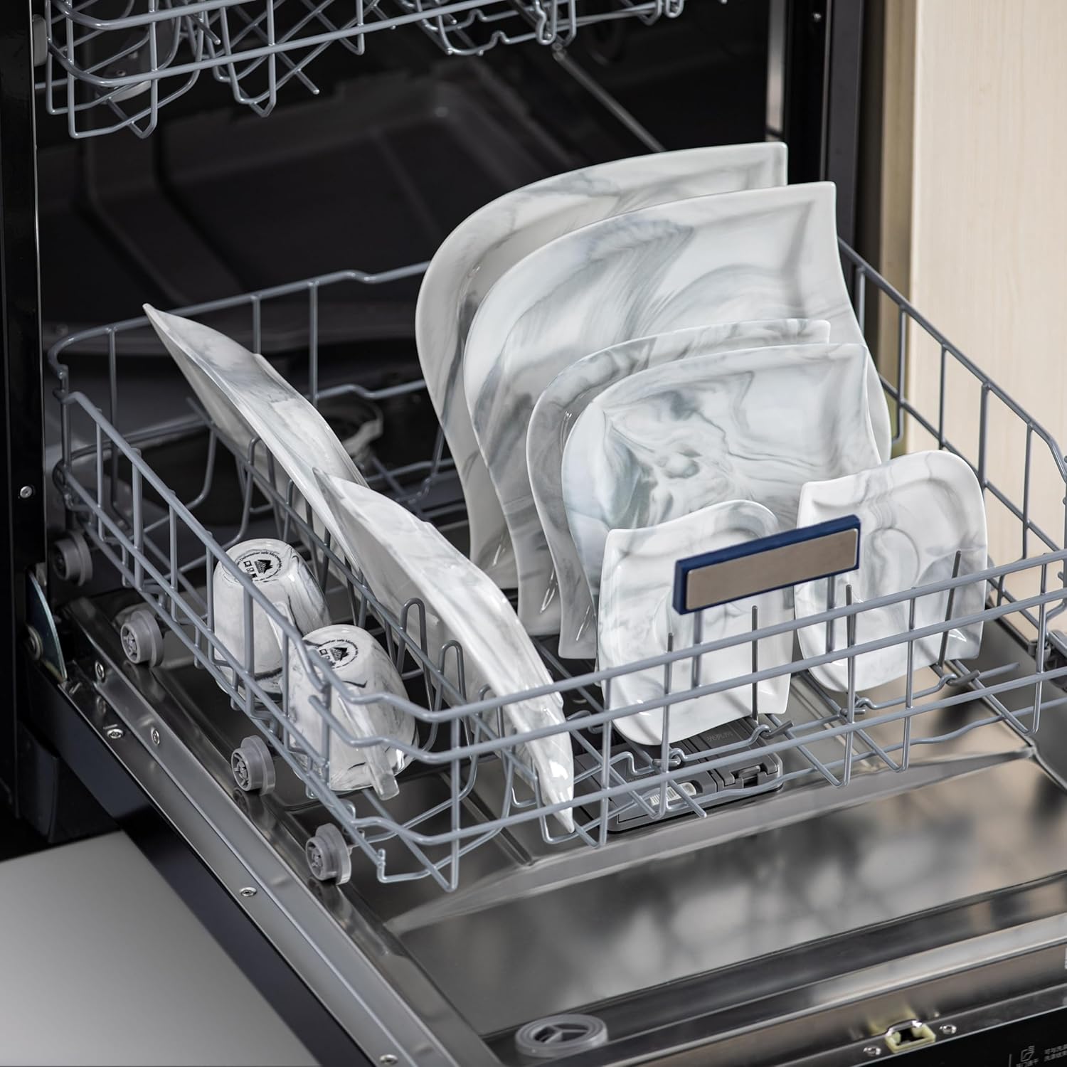 - Stylish & Low Maintenance - Featured with leaf shape design, and exquisite natural marble lines, each piece dish dinnerware sets are distinct, perfect for any casual or formal dining occasions; The marble dinnerware sets are designed to provide the best dining experience while requesting low maintenance, saves you time and effort in upkeep.