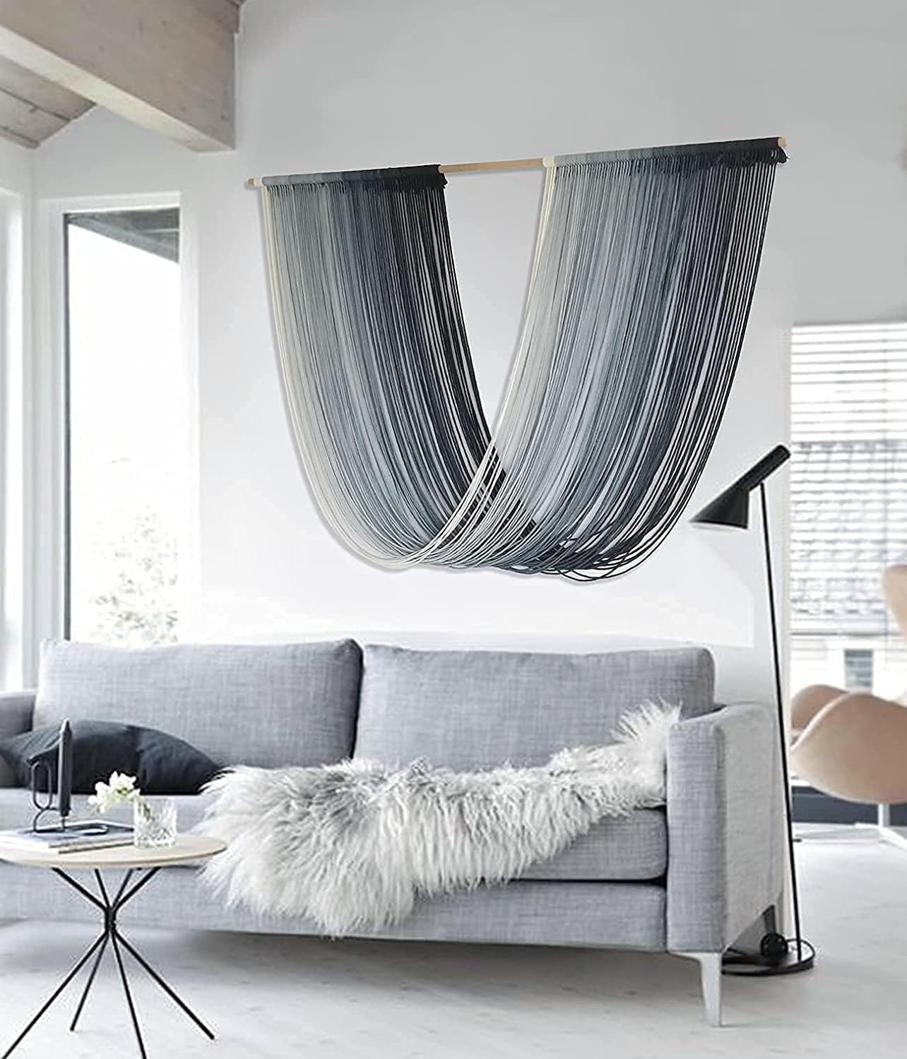 Flber Macrame Wall Hanging Large-Scale Dip-Dye Blue Bohemian Yarn Tapestry Home Room Wall Decor 57" Wx 35" L
