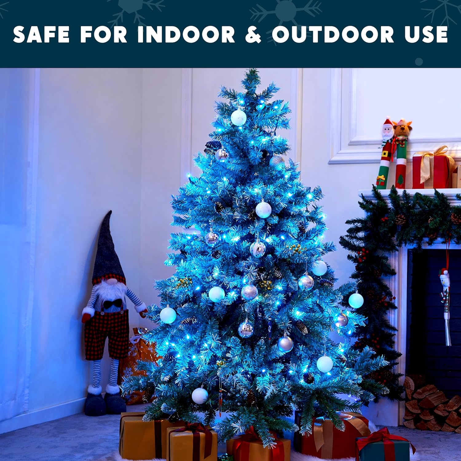 Joiedomi Blue Christmas String Lights,200(2x100) 44.6FT Christmas Fairy Tree Lights Plug in for Indoor Outdoor Xmas Decorations Patio Holiday Theme Party Yard House,Green Wire