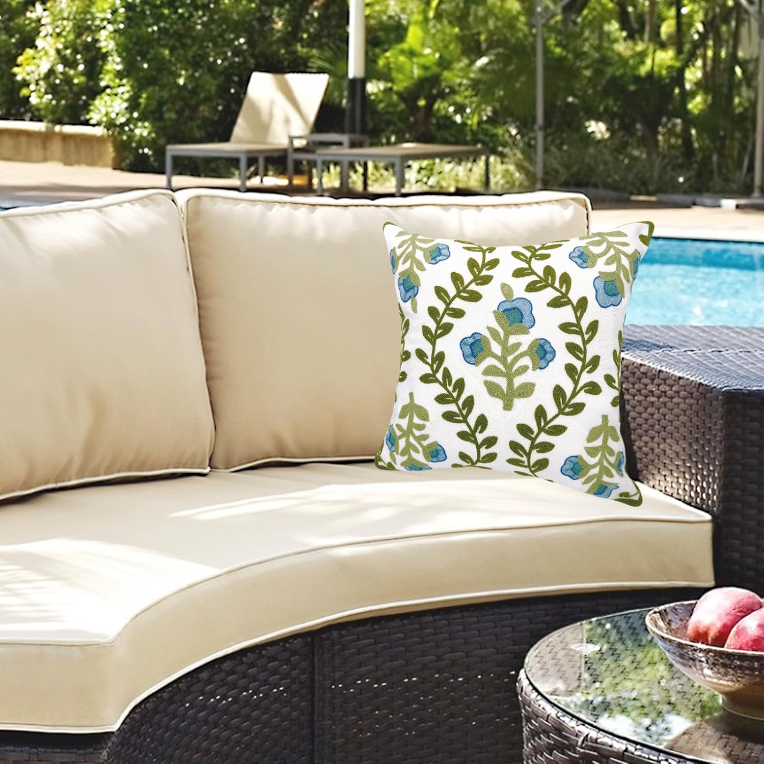 Alysheer Floral Embroidered Summer Decorative Throw Pillow Cover 18"x 18", Farmhouse Cottage Blue Flowers Green Leaves Knit Pattern Cotton Canvas Cushion Case for Sofa Couch Bed Living Room Decor