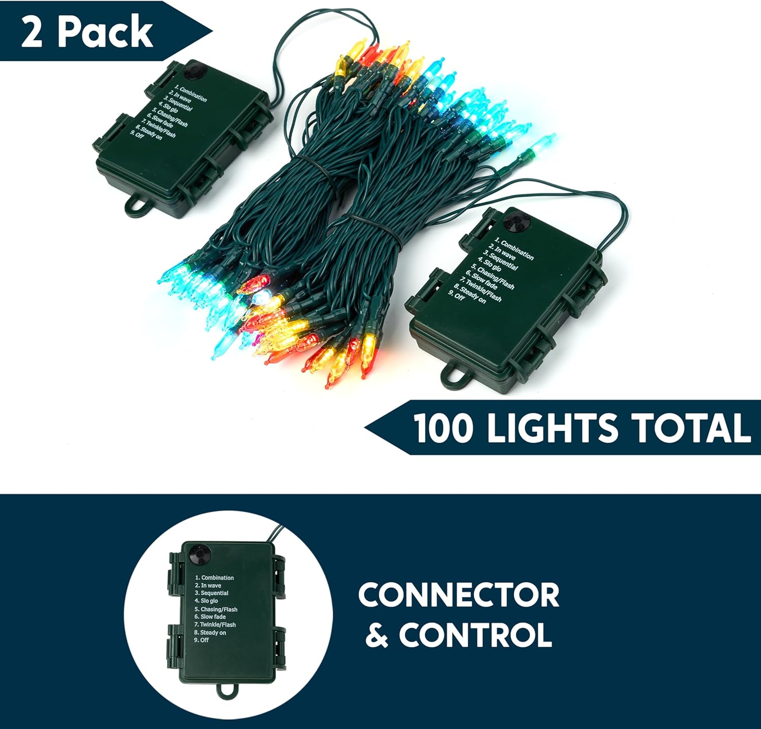 Joiedomi LED Christmas String Lights,2×50 Count 32.6FT Battery Operated Christmas Tree Fairy Lights with 8 Modes,Multifunction Green Wire for Xmas Decor Party Holiday House,Multicolor
