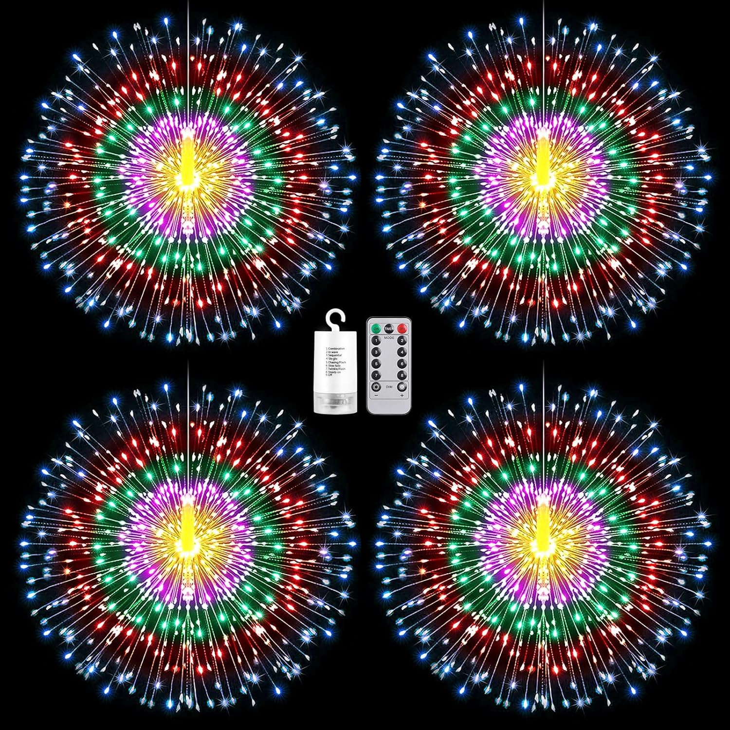 Techip 4Pcs Multicolor String Lights - 225LED Copper Wire Hanging Lights with Remote, 8 Modes, Waterproof for Wedding & Christmas Decorations