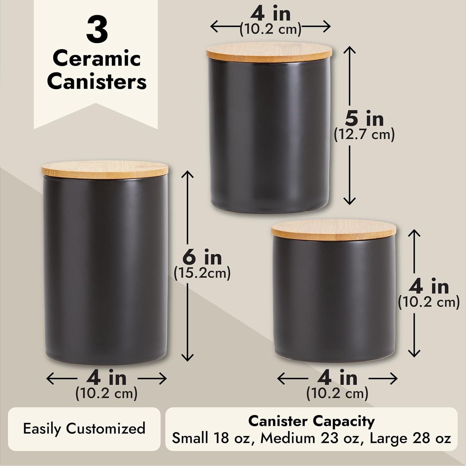 - Assorted Sizes for Convenience: The set includes three sizes to suit all your storage needs, small (18 ounces), medium (23 ounces), and large (28 ounces). This variety makes them versatile decorative containers for any kitchen counter
