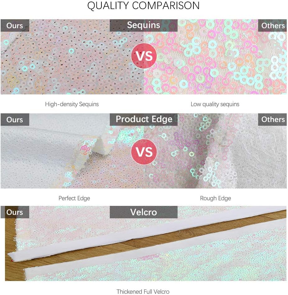 - Sparkly Tree Skirt Material: High-density 3MM sequins with satin mesh,extremely well made. This tree skirt will NOT FALL OFF and NOT SEE THROUNGH.