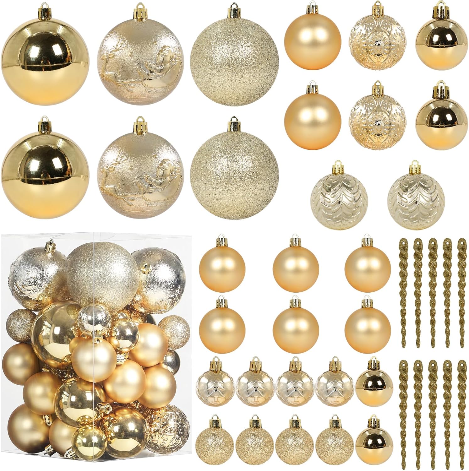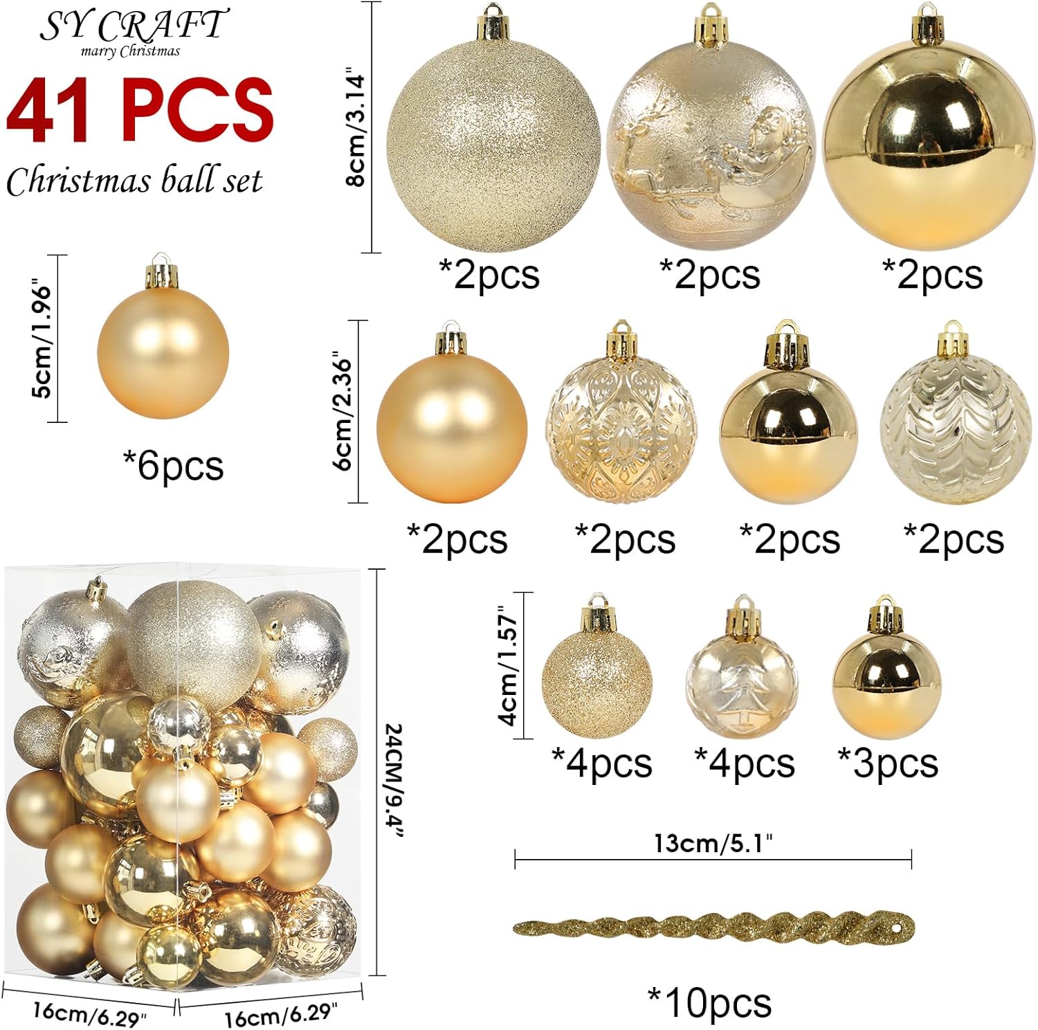 Christmas Ball Ornaments for Christmas Decorations - 41 Pieces Xmas Tree Shatterproof Gold Ball Ornaments with Hanging Loop for Holiday and Seasonal Decoration