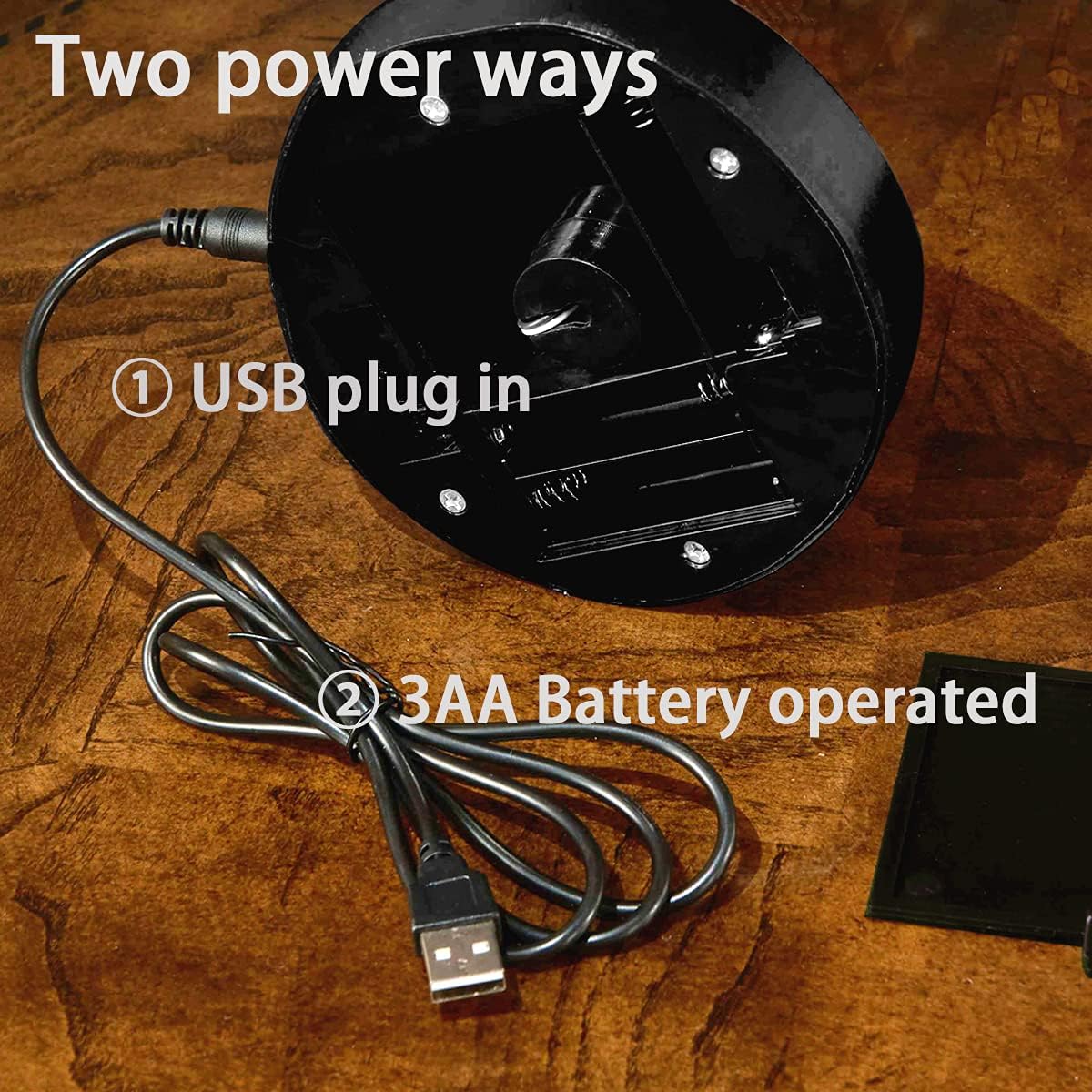 - 🎃 Two-way power: ① Works with 3 AA Batteries.(Battery NOT included)② Works with a corded USB charg`er.(Charger NOT included), it works with 4.5V or 5V charger plug.